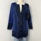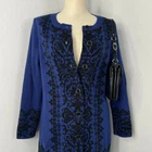 Susan Graver Women's Blue Black Button Front Design Cardigan Sweater Size Small, Light Piling Measurements (approximate): Laying Flat not Doubled Pit to Pit: 21” Length: 31”