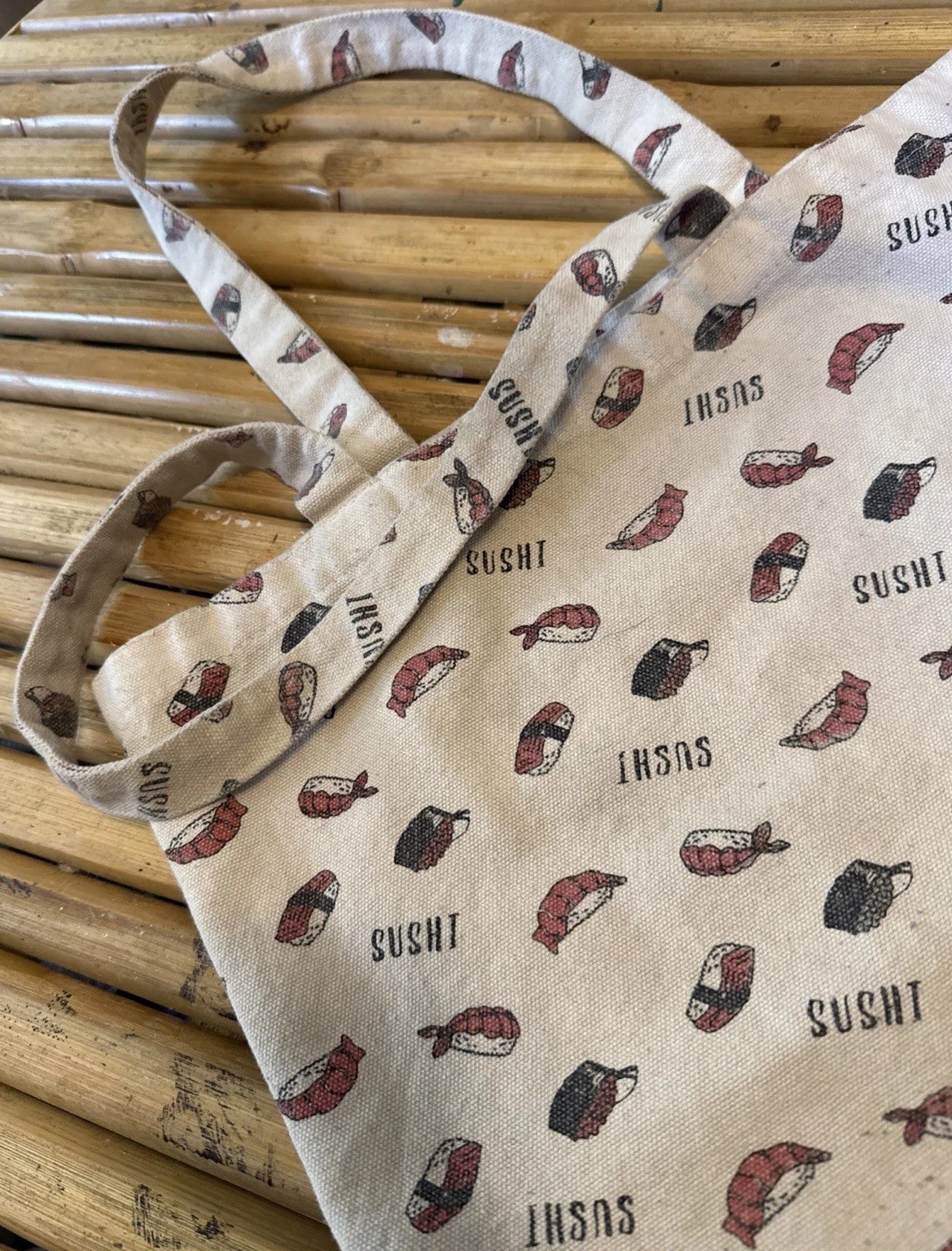 Love this sushi-themed tote! Super cute design, sturdy cotton canvas, and the perfect size for groceries or a beach day. Lightly used but in great condition—such a fun eco-friendly find! Shipping was fast too.