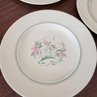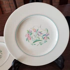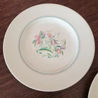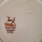 Production Style: Art Pottery Time Period Manufactured: 1930-1939 Material: Ceramic Origin: England Features: hand painted/decorative Style: Art Deco Backstamp: Painted Type: dinner plate Brand: Susie Cooper Finish: Glossy Era: Early 20th Century (1911-1940) Theme: Flowers Country/Region of Manufacture: England Original/Licensed Reproduction: Original Vintage: Yes Production Technique: Studio Crafted Color: Multicolor Pattern: Dresden spray Product Line: Crown Works