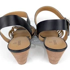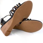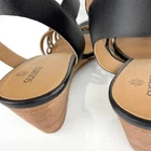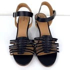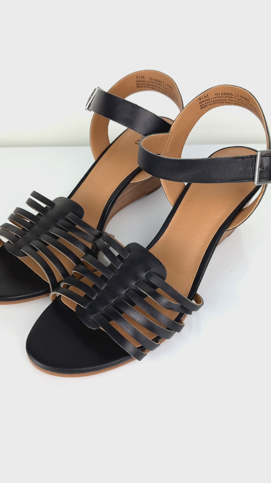 Elevate your style with these Susina Women's Terra Leather Wedge Sandals in Black. Perfect for any occasion, these strappy sandals feature a comfortable, adjustable strap and a mid-height wedge heel. Whether it's for a party, travel, or formal event, these sandals are a versatile addition to your wardrobe. Features/Style: - Open Toe - Caged Vamp - Ankle Strap with Buckle Closure - Stacked Wedge Heel - Material: Leather Upper Size: 9.5 M Color: Black Measurements (approximately): Heel- 2,5" Condition: NEW Without Box, has some marks from storing (please check the pictures), Smoke Free Home