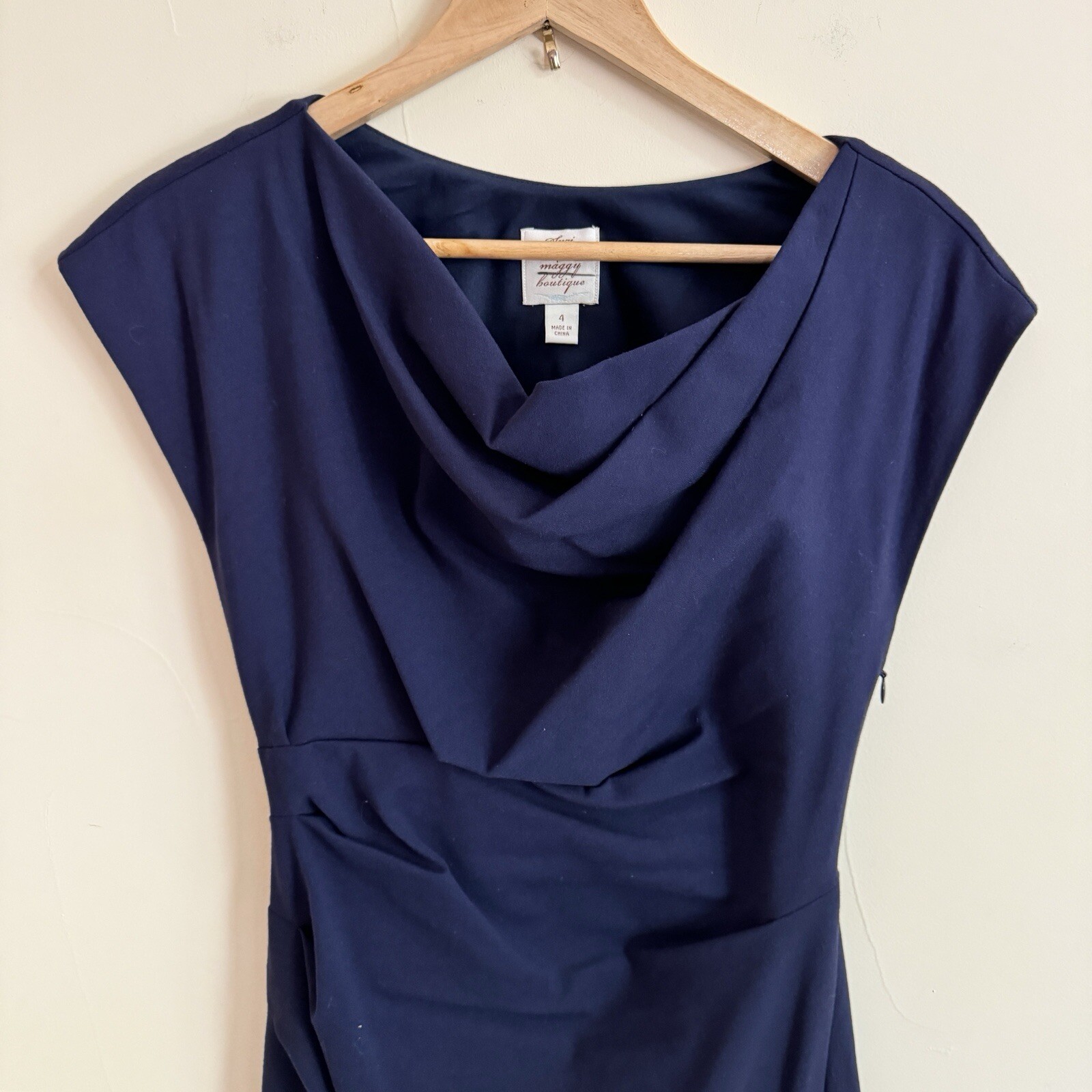 Suzi Chin for Maggy Boutique Navy Blue Draped Neck Short Cap Sleeve Women Size 4 Condition is pre-owned ~ view photos ~ no visible flaws Color: Navy Blue Size: 4 **Please see all pictures for full item condition and details.** **Please feel free to message me with questions or additional item photo requests** Tags: classic | career | cocktail TH1313 Payment: All payments are handled through eBay payments. I do not accept any other form of payment. Taxes and fees will be applied at checkout and collected by eBay. Returns: If you decide you do not want the item, please contact me within 30 days of receiving your item(s). Items must be returned in their original condition (no signs of wear, CLEAN, with tags and packaging attached or intact, if applicable). Once I receive your item in its original condition, I will issue a refund for the cost of the item. If item is not returned in its original condition or if the item has signs of wear, I will deduct the appropriate amount for cleaning, repair, or replacement. International Returns are handled through Ebay. Business Policies: Buyer is responsible for the collection of package after tracking shows delivery. I will offer refunds for packages lost by USPS, but I will NOT offer refunds if USPS tracking shows delivery to the buyer.