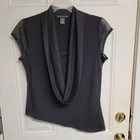 $ 10.56Ann Taylor Womens Medium Black White Sheer Floral Blouse with Tie Detail