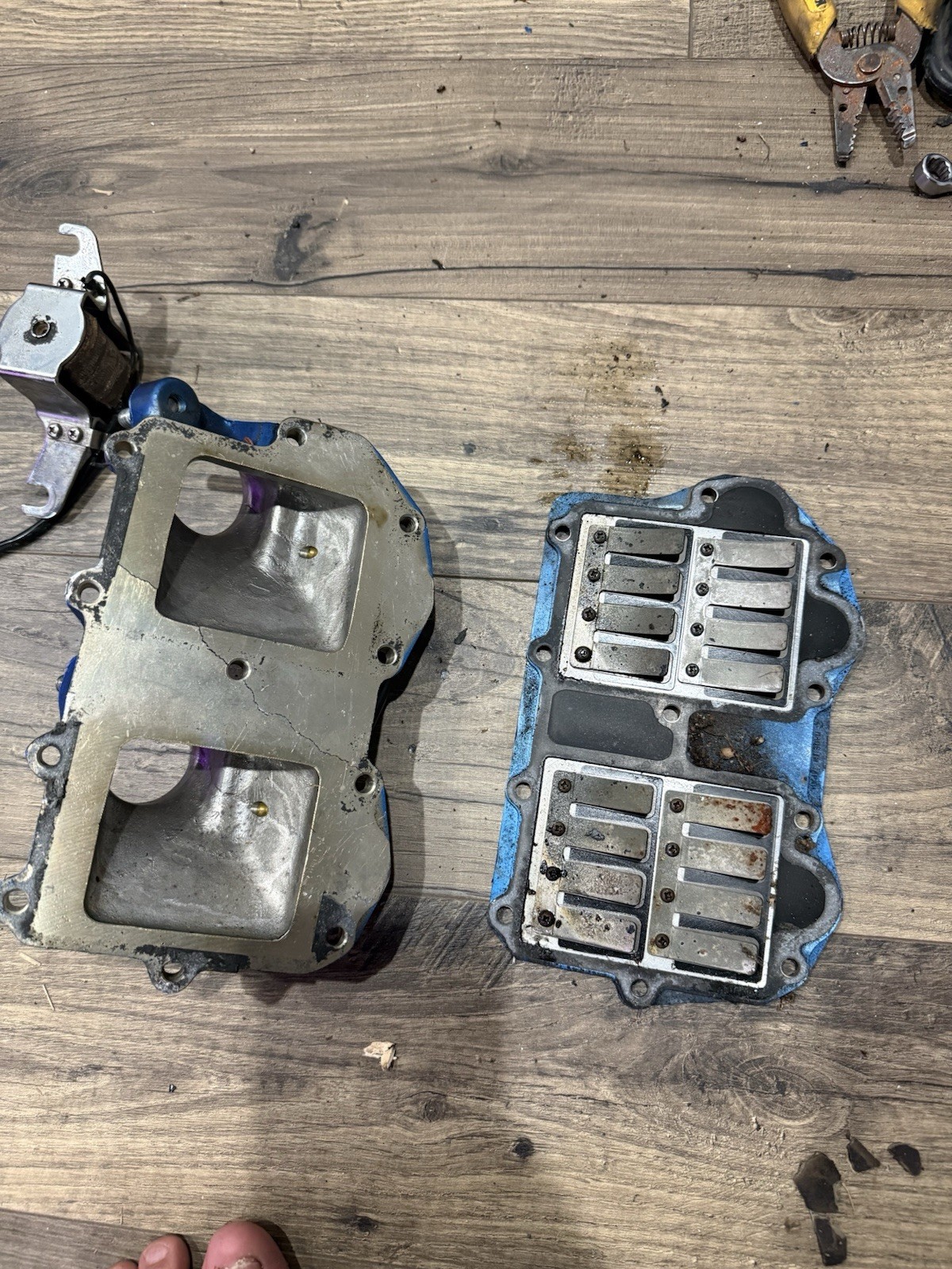 With a cleaning, it will work perfectly. The intake manifold is cracked; I think it can be repaired. It's just a small part. I'm selling it all together. I need to recoup some of my investment, as I couldn't register the boat.