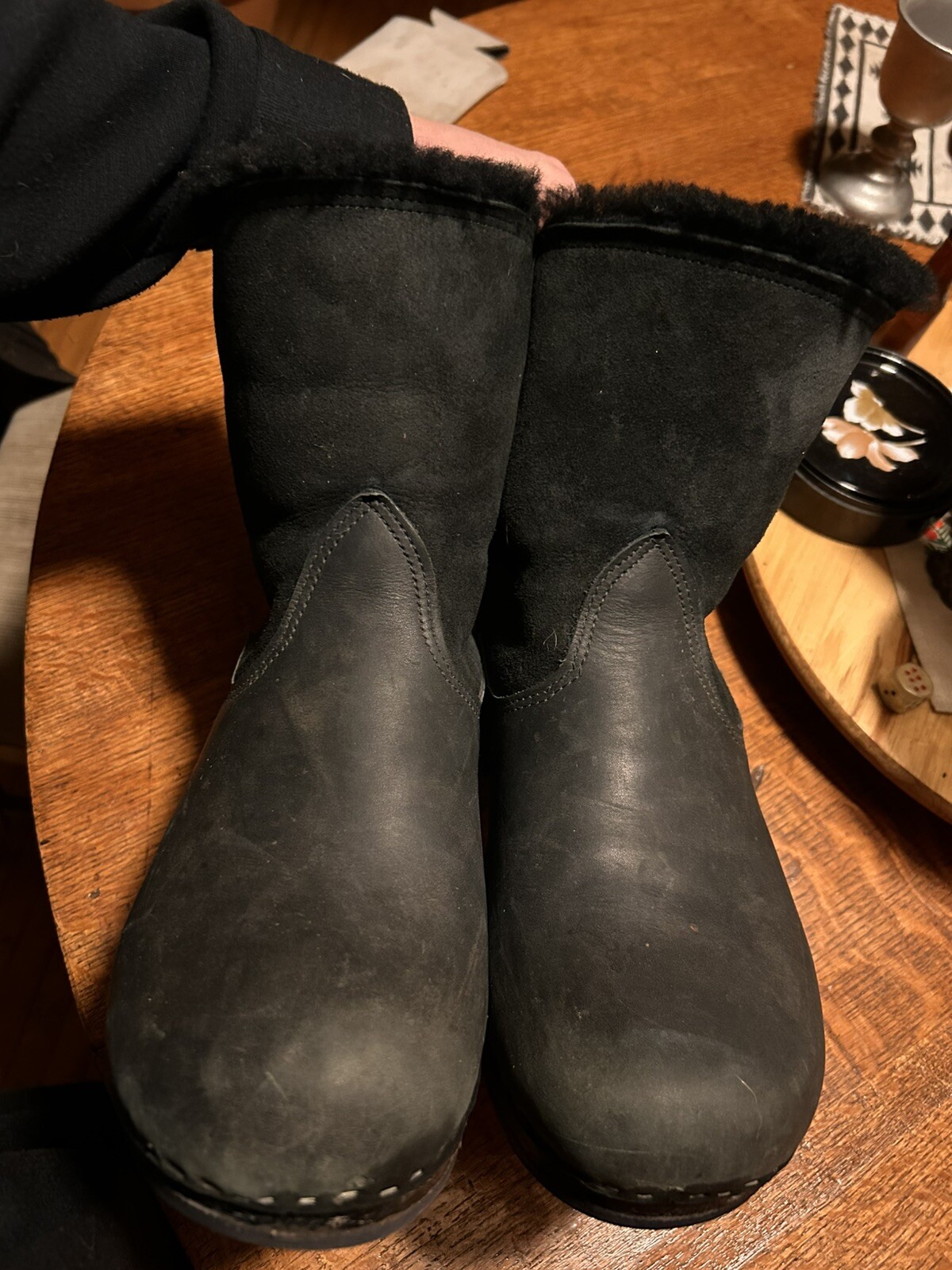 Sven sheep wool lined winter leather boots. In good shape. Worn lightly Boot is size 45 in EU size. Around a 12 with lining. DM with any other questions.
