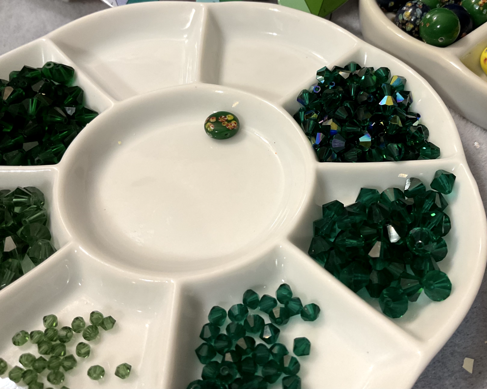 Vintage Swarovski Bead Lots inspire your unique creations to stand out while offering the air of exclusivity your Bead Art Jewelry Designs desire. Swarovski 5301 Crystal Bead LOT Bicones in AB Emerald / Green 3mm 5301 Transparent Green, 6mm 5301 Transparent Green, 4mm 5301 Transparent Emerald Green, 6mm 5301 Transparent Medium Emerald Green , 6mm 5301 Transparent Emerald Green, 6mm 5301 Transparent AB Emerald Green Additionally, this bead lot comes in Various sizes of Flip-Top Tube bead storage containers. My Swarovski Crystal & Czech Glass Bead Lot Collections offer significant savings, featuring various beads and crystal sizes in one bead lot, with postage savings alone - as postage continues its meteoric rise - savings that you can put towards ordering the best in quality beads and beading supplies for your Bead Art Jewelry Designs. Bead Lot includes what's listed/pictured and Flip Top Tube packaging: 3mm 5301 Transparent Green 6mm 5301 Transparent Green 4mm 5301 Transparent Emerald Green 6mm 5301 Transparent Medium Emerald Green 6mm 5301 Transparent Emerald Green 6mm 5301 Transparent AB Emerald Green All of my Swarovski listings are Vintage or Circa (manufactured before or around) 1998 - 2003.. As most jewelry designers, bead artists, and crafters know, Swarovski no longer just sells to smaller, unauthorized, contract-bound resellers. With all that being said, and although there are others with limited offerings of Swarovski Crystal Beads, Bicones & Pendants, we all know that, unless an authorized reseller, what being offered is it. NOTE : Even authorized resellers will not have many of the colors, sizes, and finishes as the latest Swarovski Crystal Designs have changed considerably. There are some amazing Crystals bead manufactures which my wholesaler and certified Swarovski dealer highly recommend; these brands are more than comparable replacements for anything Swarovski.