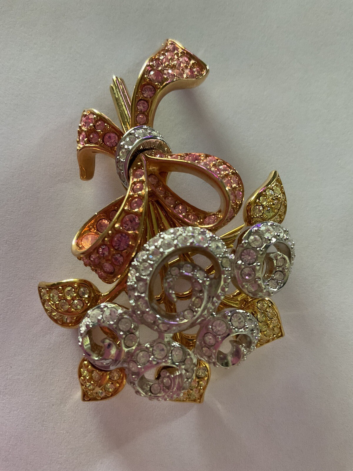 This gorgeous Swarovski brooch dazzles with delicate pink and clear crystals arranged in a timeless floral bouquet. The vintage-inspired design catches the light beautifully, adding instant elegance to blazers, scarves, or dresses. The craftsmanship is flawless—every crystal sparkles with Swarovski’s signature brilliance. It’s a perfect gift for someone special or a luxurious little indulgence to elevate your own jewelry collection. Lightweight yet sturdy, it stays securely in place while making any outfit feel extra special. Absolutely love it!