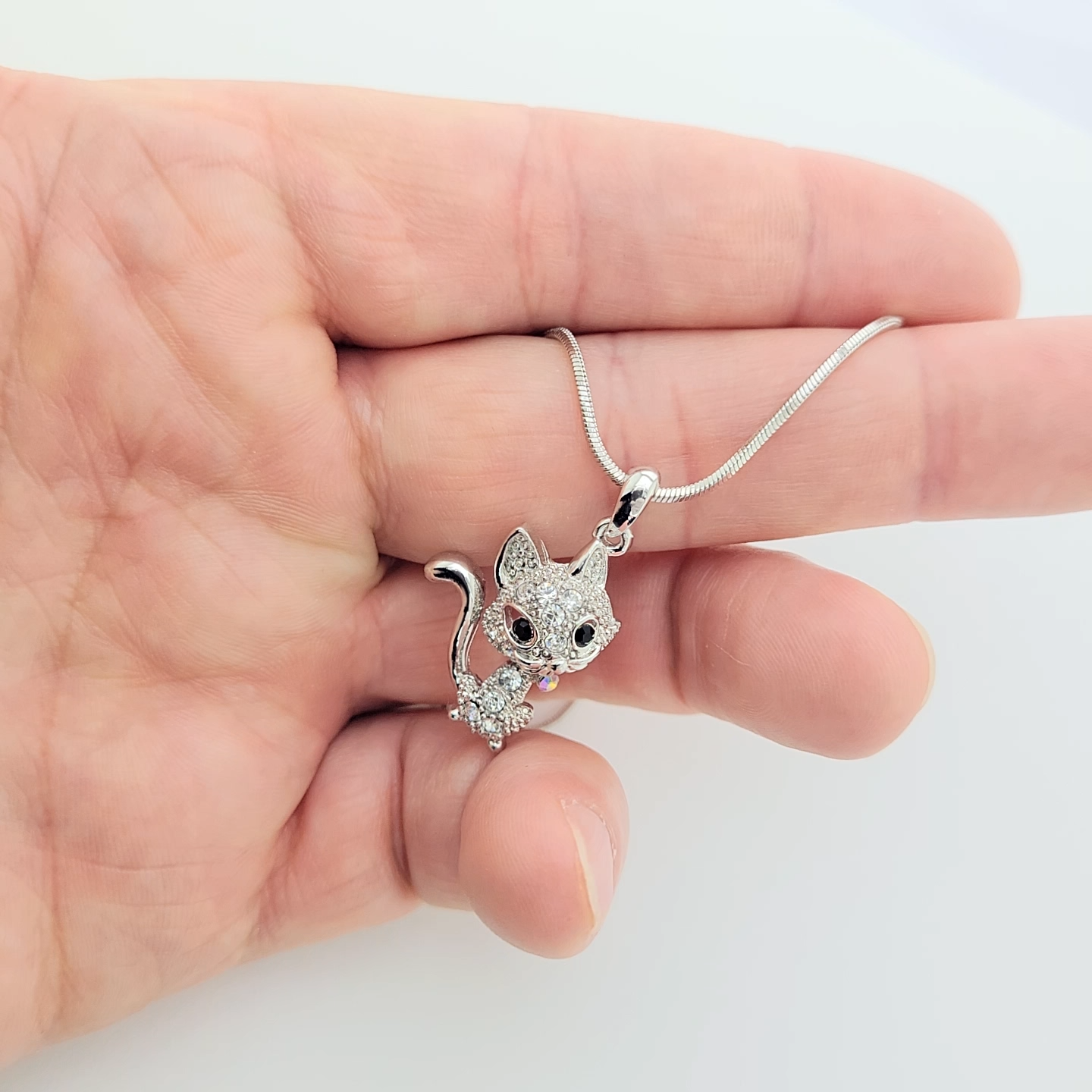 Made With Swarovski Crystal Cat Pet Kitten Clear Pendant Necklace 18" Chain Dimension: 1.18" x 0.67" (30 x 17 mm) With silver plated 18 inch / 46 cm chain lobster clasp Condition: A brand-new, unused, and unworn item Jewelry box included, ready for gift giving! Perfect Birthday, Christmas, Valentines day and anniversary gift for your loved ones, or a gift for yourself!. Please drop us a message if you have any inquiry. We will try our best to help you out! Positive feedback is greatly appreciated. If you are unhappy for any reason please do not leave negative or neutral feedback and allow us the opportunity resolve all issues. We are very fair and easy to deal with. The crystals of this finished product are being manufactured by D. Swarovski & Co. “Swarovski” is registered trademark of Swarovski AG, but there is no relationship between any Swarovski company and the manufacturer of this product. PAYMENT Payment should be made within seven days since the winning of the first item. RETURNS If you are not 100% happy with the item you received, you can return it in original packaging and condition within 30 days of receiving your package.