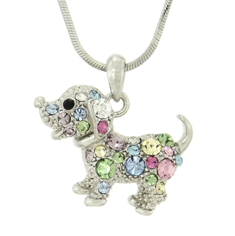 Swarovski Crystal Dog Pendant Necklace 20" Chain Multi-Color Gift