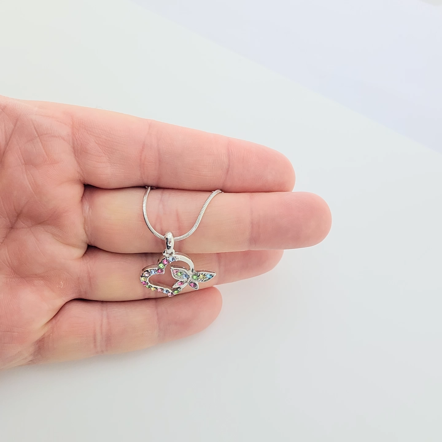 Heart Butterfly Made With Swarovski Crystal Love Multi Color Pendant Necklac Dimension: 1" x 1" (26 mm x 26 mm) With 16 inch / 41 cm chain lobster clasp Condition: A brand-new, unused, and unworn item Jewelry box included, ready for gift giving! Perfect Birthday, Christmas, Valentines day and anniversary gift for your loved ones, or a gift for yourself!. This elegant high quality necklace is awesome for any occasion or everyday wear and also great value for money. A high polish finish completes this great look. This necklace will make a wonderful gift for your loved ones, or a gift for yourself! Please drop us a message if you have any inquiry. We will try our best to help you out! Items are measured entirely include the bail, earrings include the hooks, the bracelets and necklaces to its last link. Positive feedback is greatly appreciated. If you are unhappy for any reason please do not leave negative or neutral feedback and allow us the opportunity resolve all issues. We are very fair and easy to deal with. The crystals of this finished product are being manufactured by D. Swarovski & Co. “Swarovski” is registered trademark of Swarovski AG, but there is no relationship between any Swarovski company and the manufacturer of this product. PAYMENT Payment should be made within seven days since the winning of the first item. RETURNS If you are not 100% happy with the item you received, you can return it in original packaging and condition within 30 days of receiving your package.