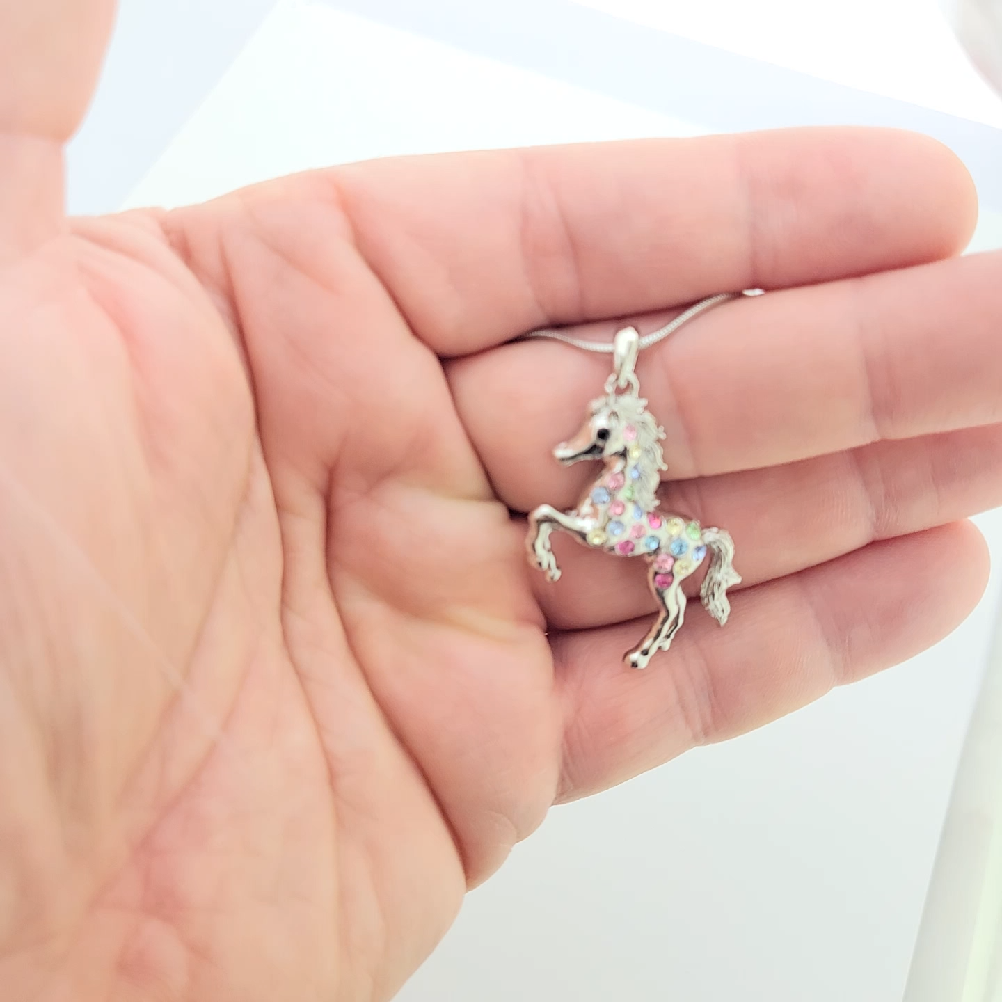 Horse Multi Color Pendant Made With Swarovski Crystal Charm Necklace Gift Dimension: 1.6" x 1.2" ( 40 x 30 mm) With 16 inch / 41 cm chain lobster clasp Condition: A brand-new, unused, and unworn item Jewelry box included, ready for gift giving! Perfect Birthday, Christmas, Valentines day and anniversary gift for your loved ones, or a gift for yourself!. Please drop us a message if you have any inquiry. We will try our best to help you out! Positive feedback is greatly appreciated. If you are unhappy for any reason please do not leave negative or neutral feedback and allow us the opportunity resolve all issues. We are very fair and easy to deal with. The crystals of this finished product are being manufactured by D. Swarovski & Co. “Swarovski” is registered trademark of Swarovski AG, but there is no relationship between any Swarovski company and the manufacturer of this product. PAYMENT Payment should be made within seven days since the winning of the first item. RETURNS If you are not 100% happy with the item you received, you can return it in original packaging and condition within 30 days of receiving your package.