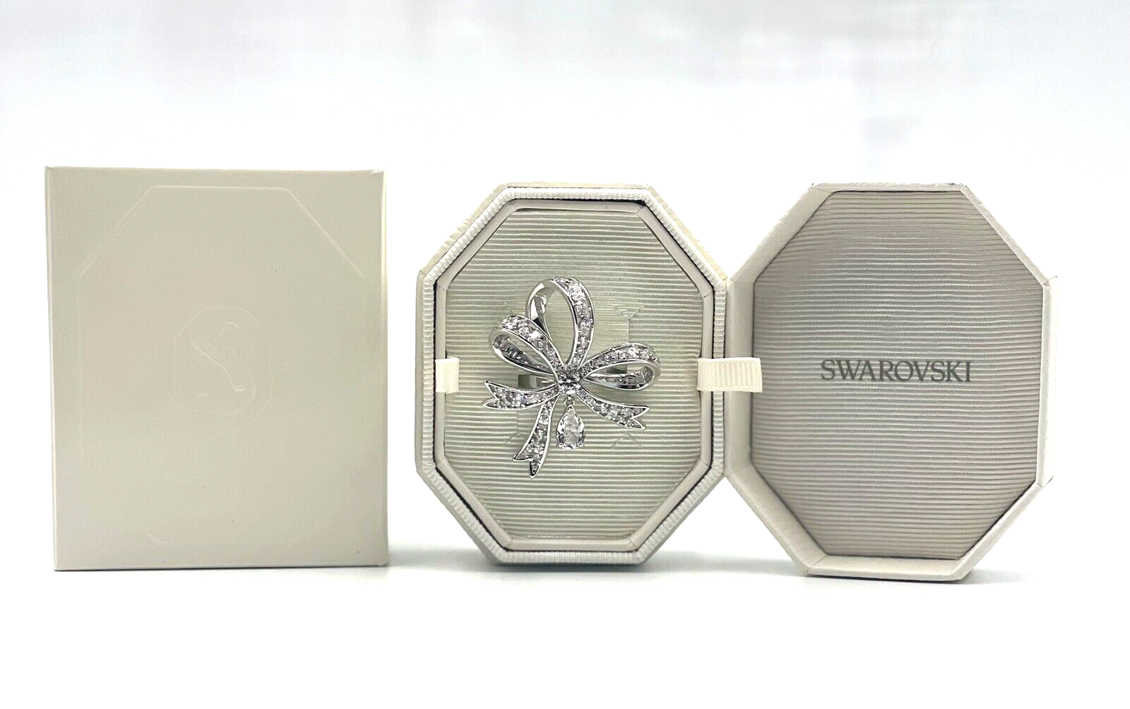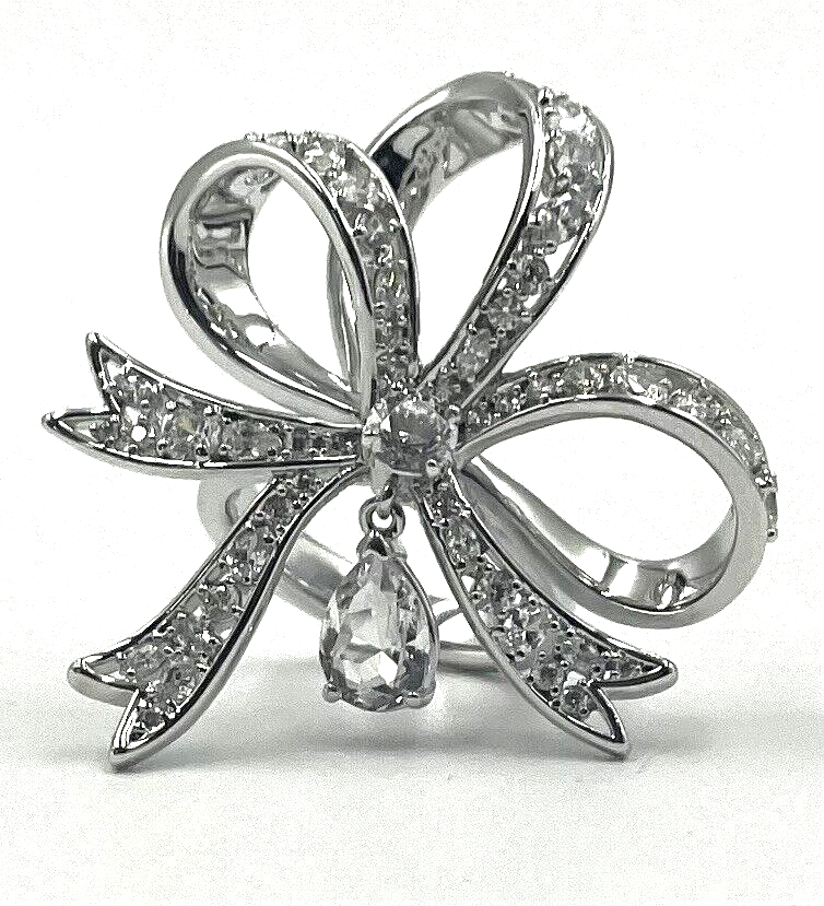 Swarovski Volta Cocktail Ring Bow White Crystal Rhodium Plated 58 Large 5647725