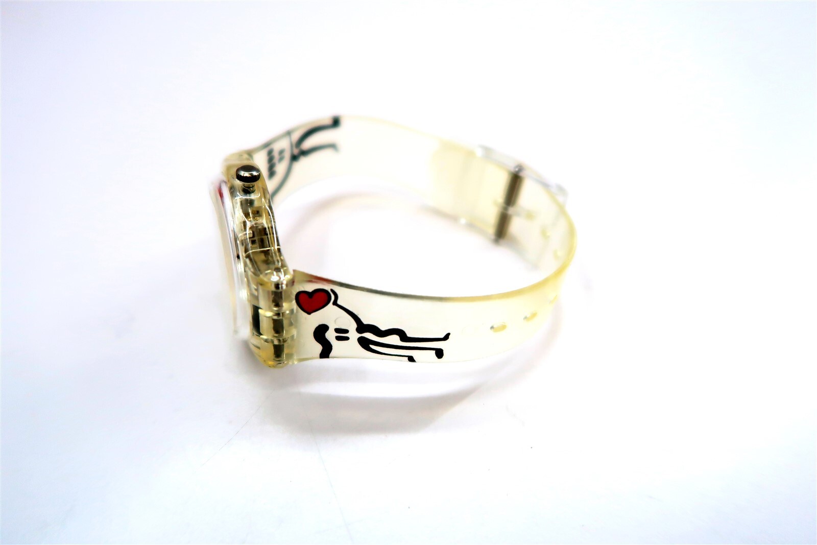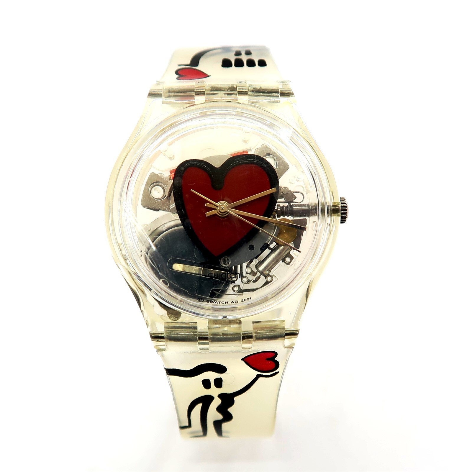 Swatch Watch CUPID'S BOW GK371 New NOS Special Edition Box Set 2002 This eBay listing is for a New Old Stock classic SWATCH WATCH that comes as you see pictured in the listing and noted above. This watch is brand new and never used before and comes with the original case and paperwork. If you collect classic Swatch Watches, then please check out my other listings in my ebay store for many more great Swatches!! I just picked up close to 800 NOS Swatches from a local auction where I'm told the consignor had one of the largest Swatch watch collection in the United States. This was their 3rd and final auction of Swatches. In total, I purchased close to 1500+ Swatches!! Many of the watches are Special Editions, Limited Editions, Boxed Sets, Scarce and rare models plus other vintage Swatches as well. I will remove all of the old Swatch batteries and will replaced them with brand new batteries to verify that they are all are all in good working condition unless noted below. Please note that vintage and retro Swatches are on the smaller size compared to modern style watches. Most standard Gents (mens) watches have a 33mm-34mm case. I will try to include a picture with each new listing showing the watch next to a standard ruler so that you can see the true size of this collectible Swatch watch. Swatch name : CUPID'S BOW Model : GK371 New Battery : Yes (due to age, the original battery was removed with a new battery installed) Features/Notes : Works Great! Circa 2002. Special Edition Boxed Set Includes outer box (foxing spots on the inside of box), watch, paperwork, clear case full of foam hearts and bow for outside of the box. Seller Location Reference - Box 24 BID IN CONFIDENCE – CHECK MY FEEDBACK! My goal is your satisfaction. I leave positive feedback right after the payment is received for all orders!! If you plan to leave anything less than positive feedback and 5 stars - please let me know so that I can work out any problems that you may have. I aim to please!! SHIPPING & HANDLING FOR US BIDDERS We ship ASAP upon payment as noted above within 1 business day 99% of the time!! We normally pack up your new treasures 2 - 3 times a day and ship using USPS and Fedex Ground so that you get your items in a timely fashion. As always - there is no charge for local pickup on any of my items!! SHIPPING AND HANDLING FOR INTERNATIONAL BIDDERS Import duties, taxes and charges are not included in the item price or shipping charges. These charges are the buyer’s responsibility. Please check with your country’s customs office to determine what these additional costs will be prior to bidding/buying.” THANK YOU AND HAVE A WONDERFUL DAY!! Powered by SixBit's eCommerce Solution