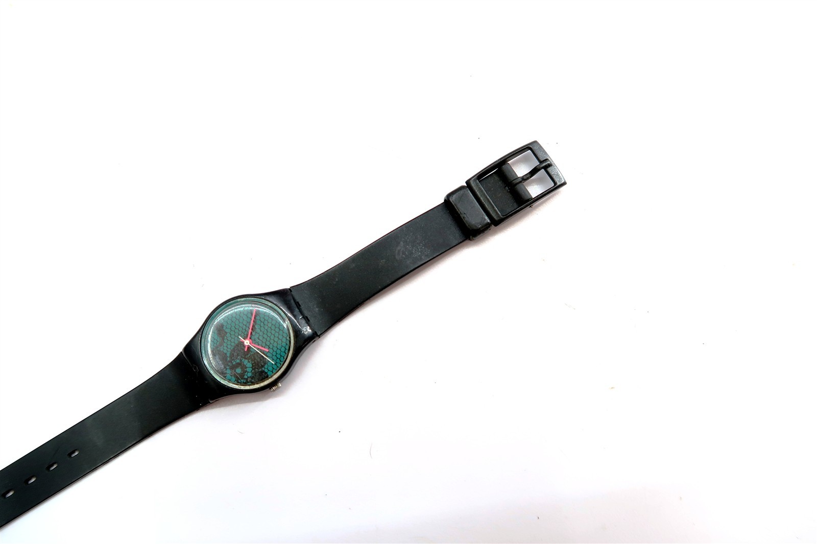Swatch Watch Ladies VELVET UNDERGROUND LB108 Vintage 1985 NEW BATTERY Black Band This eBay listing is for a USED classic/vintage SWATCH WATCH that comes as you see pictured in the listing and noted above. This watch does NOT comes with any case or paperwork. If you collect classic Swatch Watches, then please check out my other listings in my ebay store for many more great Swatches!! I just picked up close to 800 NOS Swatches from a local auction where I'm told the consignor had one of the largest Swatch watch collection in the United States. This was their 4th and final auction of Swatches. In total, I purchased close to 1500+ Swatches!! Many of the watches are Special Editions, Limited Editions, Boxed Sets, Scarce and rare models plus other vintage Swatches as well. I will remove all of the old Swatch batteries and will replaced them with brand new batteries to verify that they are in good working condition unless noted below. Please note that vintage and retro Swatches are on the smaller size compared to modern style watches. Most standard Gents (mens) watches have a 33mm-34mm case and most standard Ladies watches have a 25mm case. I will try to include a picture in this listing showing the watch next to a standard ruler so that you can see the true size of this collectible Swatch watch. Swatch name : VELVET UNDERGROUND Model : LB108 New Battery : Yes (due to age, the original battery was removed with a new battery installed) Features/Notes : Works Great! Circa 1985. Condition is good for it's age. PLEASE NOTE - this is for the Swatch only that is pictured with nothing else included like the original case or paperwork. I believe the band on this Swatch is a replacement and not the original since this band is black and this originally came with a purple band. Seller Location Reference - Box 10/Bag 2 BID IN CONFIDENCE – CHECK MY FEEDBACK! My goal is your satisfaction. I leave positive feedback right after the payment is received for all orders!! If you plan to leave anything less than positive feedback and 5 stars - please let me know so that I can work out any problems that you may have. I aim to please!! SHIPPING & HANDLING FOR US BIDDERS We ship ASAP upon payment as noted above within 1 business day 99% of the time!! We normally pack up your new treasures 2 - 3 times a day and ship using USPS and Fedex Ground so that you get your items in a timely fashion. As always - there is no charge for local pickup on any of my items!! SHIPPING AND HANDLING FOR INTERNATIONAL BIDDERS Import duties, taxes and charges are not included in the item price or shipping charges. These charges are the buyer’s responsibility. Please check with your country’s customs office to determine what these additional costs will be prior to bidding/buying.” THANK YOU AND HAVE A WONDERFUL DAY!! Powered by SixBit's eCommerce Solution