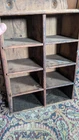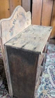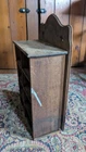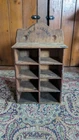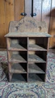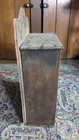 Offering this antique wood spice cabinet. Measures 17" L x 10.5" W x 5" Deep. This cabinet has a great patina and dark surface. Has a stencil at the top. No drawers, as found. It's in good overall condition. The bottom was missing and added by me. Is consistent with age and stable. Can sit upright or be hung by the toothed bracket on the back. Expect minor imperfection consistent with age and use. Thanks for looking.