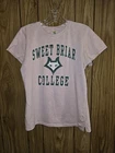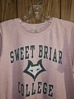 This is a pink graphic logo t-shirt in size L, officially licensed by Perrin for the Sweet Briar College Vixens basketball team. The retro throwback design is perfect for women who are fans of the college team. Made in India, this NCAA shirt is a stylish way to show support during the regular season.