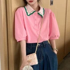 Features: Puff half sleeves, elastic cuffs, contrast color striped turn-down collar with buttons front. Casual pull-on closure, loose fitting, short cropped length, navel exposed, 2 colors optional. Made of quality cotton, skin-friendly, soft, stretchy, breathable, comfortable to wear. Perfect pair with high waisted jeans, pants, leggings, shorts, skirts, coat. Great for music festival, casual daily wear, vacations, date, picnic, shopping, party, beach and other special occasions. Specification: Material: Cotton Optional Color: Pink, White Size: (Chinese Size,follow the size chart to select please) Size:M Length:53cm(20.87inch) Bust:74cm(29.13inch) Sleeve:22cm(8.66inch) Shoulder:31cm(12.20inch) Size:L Length:54cm(21.26inch) Bust:78cm(30.71inch) Sleeve:23cm(9.06inch) Shoulder:33cm(12.99inch) Quantity: 1 pc Warm prompt: Please allow 0-1cm error due to manual measurement. please make sure you do not mind before you bid. Due to difference between different monitors, the picture may not reflect the actual color of the item. Package includes: 1Pc Crop Top(without retail package)
