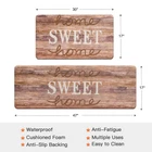 Features: Soft sweet home kitchen rugs bring you Western style life, can be used in kitchens, bathrooms, outdoors and more. Easy to clean, use vacuum cleaner, hand wash, very durable. PVC kitchen floor mat with sweet home pattern. Quality material makes this rug looks exquisite and durable. You can use it as a laundry room, patio, hallway rug, bathtub mat, kitchen or bathroom runner, entrance mat, in office, store, salon, garage, house or apartment. Specifications: Material: PVC Foam Rug Dimension: 17''x 30'' and 17''x 47'' Thickness: 0.3inch(8mm) Style: Sweet home pattern Package Includes: Set of 2 Kitchen Rugs(different size) Warm Note: 1. Please allow 1-2cm differs due to manual measurement! 2. There may be a little color difference because of the shooting light and angle. Please feel free to contact us if you have any problem. Comfortable & Anti-fatigue--Give your feet a break with our cushioned kitchen mat! Perfect for anyone who spends a lot of time in the kitchen, this mat offers exceptional anti-fatigue support, helping to reduce pressure and strain on your feet, legs, and joints. You'll love the extra cushioning and support, and your feet will thank you! Easy to Clean--Made with water and stain-resistant materials, it's easy to wipe down with a damp cloth or clean with any common household cleaner. No more worrying about spills and messes ruining your kitchen mat - our mat will always look as good as new! Non-slip Backing--The anti-slip backing ensures that the mat stays firmly in place, even on slippery surfaces like wood, ceramic, or marble. It's designed to be versatile and can be used on many different surfaces, making it perfect for any kitchen. The beveled edges also help prevent tripping, making them safe for your entire family. Stylish Design--Looking for a kitchen mat that's both stylish and practical? Look no further than our kitchen mat with a sweet home design. The unique design of our kitchen mat is sure to turn heads in any kitchen. With its elegant pattern and well-thought colors, it adds a touch of sophistication and style that's missing from other kitchen mats on the market. High Quality & Durable--Our kitchen mat is constructed using the finest materials available, ensuring its durability and longevity. Its superior craftsmanship and high-quality components make it the perfect choice for your kitchen or workplace, this mat is built to withstand heavy use and maintain its appearance and functionality for years to come.