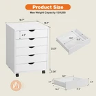 Specifications Place of Origin China Main Color White Main Material Wood Dangerous Goods #dangerFlag# Dimensions & Weights Assembled Length (in.) 18.00 Assembled Width (in.) 15.00 Assembled Height (in.) 25.00 Weight (lbs) 41.00 Product Features Our 5 drawer chest stands out for its unparalleled quality. Crafted with precision, it features top-notch materials like MDF board, metal slides, and wheels. This construction ensures long-lasting durability. Experience the satisfaction of owning a piece of furniture that exceeds your expectations in terms of both performance and longevity. Convenience is key in our busy lives, which is why our storage cabinet is designed with your ease in mind. Equipped with 4 wheels, including 2 with brakes, it offers effortless mobility and stability. Enjoy the flexibility of effortlessly adapting your storage setup to accommodate your evolving lifestyle. Say goodbye to clutter and embrace organization with our spacious chest with 5 drawer. Featuring 5 drawers, it provides ample storage for a wide range of items. From clothing and accessories to office supplies and children's small toys, everything can find its place within this versatile storage cabinet. Additionally, utilize the top surface to display decor or keep frequently used items within easy reach. Our wooden chest of drawer not only offers functionality but also adds a touch of elegance to any space. Its modern design complements various interior aesthetics. Choose from our sophisticated black or timeless white color options, both of which exude a chic and refined appeal. Thanks to its compact size, it fits seamlessly into any room without overpowering the decor. Description