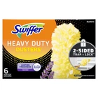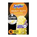 Swiffer Heavy Duty Dusters Trap & Lock Dust & Allergens* in every room. Enjoy the scent of lavender with freshness that lasts up to 1 hour after initial product use. And, with thousands of fluffy, specially-coated fibers and a 360 degrees design, they grab onto dust in every direction and don't let it go. Use Swiffer Dusters for cleaning wherever dust shows up, including fan blades, blinds, car interior, keyboard vents, bookcases and more.*Common inanimate allergens from cat and dog dander and dust mite matter. Lavender Scent, 6 Dusters. 0.32 lb Enjoy the Lasting Freshness* of Swiffer Heavy Duty Dusters with Lavender*Leaves behind up to 1 hour of freshness after initial product use Buy Swiffer Dusters worry-free. If you're not completely satisfied, check out our money-back guarantee Perfect for small living spaces, Swiffer Duster is compact, lightweight and easy to store Swiffer Dusters are perfect for tough, stubborn city dust. The specially coated fibers tackle the sooty mess with ease Swiffer Heavy Duty Dusters have specially coated fibers that reach deep into nooks and crannies to grab, trap and lock dust Did you know that dust on your surfaces can get circulated back into the air, compromising the air you breathe? Swiffer Dusters trap and lock dust from your surfaces, which promotes cleaner air. Try Swiffer, a proud partner of the American Lung Association Up to 95% Allergen Removal**Common inanimate allergens from cat and dog dander and dust mite matter. Â 0.32 lb