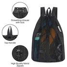 Mesh Swim Backpack is perfect to carry all your snorkel/swim/ beach/gym gear in one bag. It features a main compartment for storage and weave mesh provides breathability while allowing items to dry quickly. Soft yet tough shoulder straps ensure comfort and durability, while barrel-lock closures provide quick and easy access to your gear and secure and tight closure. Full-open design for easy access: Unlike traditional backpacks with a single top opening, our beach mesh backpack features two zippers that runs along the entire length of the backpack, allowing you to fully open it and easily access your gear. Breathable mesh: The non-mesh part of the swim bags for swimmers is made from water-resistant oxford, and the mesh pocket is made of tear-resistant material. It dries quickly and lets sand fall off easily, while keeping wet towels breathable in the beach tote. Large Capacity: beach bag measures12.6*18.9 inch, enough to carrying your equipment like swimwear, bottle, towel, goggle, cap, kickboard, paddles, short fins(only), etc. Easy &Comfortable Use: The top secure barrel-lock closure provides quick and easy access to your gear. The shoulder straps can be adjusted to the length you need. Backpack design frees up your hands.Wider and sturdy thick straps relieve your stress. Perfect Choice: This durable gym backpack is perfect for swimmer, adults. You can use it when you go to swimming, biking, camping, hiking, pool, beach, gym, or dance, sports, etc.