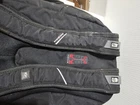 20 inches by 16 inches wide In very good condition. Slight wear under shoulder strap. See pictures please. Has a lot of pockets and a laptop section. All zippers work great. Very nice feeling backpack. Has a pocket for headphones and a space for sunglasses
