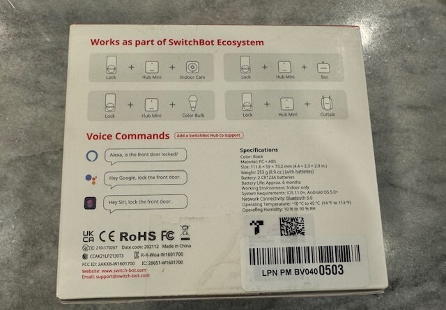 Open Box - Looks New comes with everything shown in photos Introducing the SwitchBot Smart Lock Bundle, a convenient and efficient solution for your indoor lock needs. The keyless and Bluetooth features provide added convenience and security, while the black color and sleek design make it a stylish addition to your home decor. Suitable for use with indoor doors, this smart lock bundle is perfect for those who want to replace their old lock mechanism with a more modern and reliable option. The Lock & Lock brand ensures quality and durability, while the custom bundle allows you to get everything you need in one purchase. Upgrade your home security today with the SwitchBot Smart Lock Bundle.
