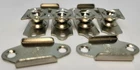 Plated Steel MIRROR MOUNTING BRACKETS Your Choice of a Brass or Nickel Plate finish. Catch (Mounts on wishbone): 1-9/16"high x 7/8"widest point --- center to center mounting holes are 1-3/16" Plate w/Swivel Bracket (Mounts on Mirror Frame): 1-11/16"high x 5/8"wide --- center to center mounting holes are 1-5/16" Projection is 1/2" -- So your mirror/picture etc - Requires 1/2" space for assembly. Set comes with one mirror mount set. (Two plates and two catches - enough to mount one mirror) Screws/nails/fasteners NOT included as every application will take a different sized screw. PLEASE NOTE: Mounting Brackets need to be installed and the mirror mounted before they will swivel. They will not rotate easily by hand as the stiffness is required to allow the mirror to be held in place when angled. D-2711 (X117)