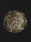 This beautiful ceramic dish, created by renowned artist Sydney Bishop, is a unique and charming addition to any home. With a colorful all-over sea shell pattern and hand-painted textured finish, this dish is both decorative and functional. Measuring 1 inch in height and 3 3/4 inches in width, it's perfect for holding trinkets, tea bags, or other small items. The dish is an original piece of art pottery, with an incised backstamp and a salt glaze finish. Its vintage style and beach-themed design make it a great choice for collectors or anyone who loves sea life. Whether you're using it to accent your home decor or giving it as a gift, this handmade dish is sure to impress.