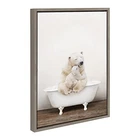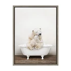 Make a bold impression on your house guests with this whimsical animal art piece by artist Amy Peterson. With its sleek modern frame, this fun, contemporary design is the perfect art piece to add to your home decor collection. Framed in the USA in Waunakee, Wisconsin, this floating canvas art will be a pleasure to look at every day in your living room, bedroom, nursery, or any room in the home. This art print also makes an excellent gift for birthdays, holidays, or house-warming parties. Printed on gallery-wrapped canvas and framed with a lightweight polystyrene frame, this wall art is easy to display on the wall. The outer dimensions are 18 inches by 24 inches by 1.6 inches. Print Name: “Mother and Baby Polar Bear in Rustic Bath” Transitional Canvas Wall Art: Whimsical animal art on framed high-quality gallery-wrapped canvas. Outside display dimensions are 24 inches by 18 inches by 1.6 inches High Quality Materials: Printed with UV fade-resistant inks for picture-perfect detail and incredible depth of color. Our premium high tension canvas is stretched across a solid surface to resist sagging Premium Framing: Our custom wall art has a durable modern frame that's made with a premium lightweight polystyrene and includes hangers to easily hang on the wall Locally Hand Framed: We pride ourselves on workmanship and quality, so our gallery wrapped canvas is printed and hand-framed in Waunakee, Wisconsin, USA of domestic and imported parts Independent Artist Designed: Print "Mother and Baby Polar Bear in Rustic Bath" 2022 Amy Peterson Art Studio. Check out other work by this artist to create your very own gallery wall
