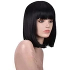 $ 24.5Short Black Straight Human Hair Bob Lace Front Wig Glueless Remy