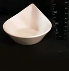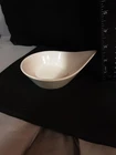 EXCELLENT CONDITION!!! Upgrade your dining experience with an exquisite set of Syracuse China #112 Slenda Royale Rideau 4.5oz Pyramid Bowls. Purchase is preferred by the case but I am willing to sell individually for $8 each. There are 4 cases (12 pieces each) available. These Pyramid Bowls are perfect for all occasions. The Royale Rideau is cream-colored with a 1970s Slenda design that adds a touch of elegance to any table setting. These small, round pyramid bowls are stackable (see photos) They are oven-safe, break/chip-resistant, freezer-safe, microwave-safe, and dishwasher-safe. This durability makes them perfect for restaurants and other commercial establishments where food is served. This size bowl was partly designed with small commercial spaces in mind such as trains and planes where the dining area is small. The teardrop-shaped "handle" makes it easy to lift and/or remove safetly from a crowdéd table area. The teardrop handle design feels secure and is easily gripped so the bowl won't slip. These unique-looking bowls are an original American culture design from the late 20th century (1970-1979). The glossy finish and unique pyramid shape, along with the classic, elegant style, will make these bowls a perfect addition to any home dinnerware or China collection. These were made before Libbey took possession of Syracuse China. Libbey manufactures these bowls today. Although both share the same bottom stamp, they are slightly different both in design and dimensions.