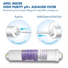 APEC ESSENCE series standard capacity pre-filter set for ROES-PH75 is made with high quality filtration components to protect and prolong the lifespan of your reverse osmosis system. Premium quality filter set lasts over 6 to 12 months for high performance impurity removal. These standard size filters are 10 inch and compatible with all standard size under counter RO systems. 1st stage: 5 micron polypropylene filter to remove sediment, particles, and rust. Prevent sediment from building up and clogging the filters and the system. 2nd and 3rd stage: 10 micron extruded carbon block filter to remove chlorine, taste & odor at a fast flow rate. Improve water taste, protect the life of the RO membrane and enjoy chlorine free water. 6th stage: 10 inch high purity pH+ calcium carbonate alkaline inline filters W/quick connect. Compatible with APEC ROES-PH75 and all other standard size under counter reverse osmosis systems. For over 20 years, APEC has been an industry leading manufacturer who specializes in high performance RO systems. As the original manufacturer, we have dedicated a knowledgeable and sincere team that is committed to providing customer SATISFACTION in hopes to bring many years of enjoyment and good health for you and your family. ESSENCE Series FILTER-SET-ESPH is for ROES-PH75. 1st stage 5 micron Polypropylene sediment filter to remove dust, particles, and rust 2nd & 3rd stage 10 micron extruded carbon block filters to remove chlorine, taste & odor 6th stage 10" High Purity US Made pH+ Calcium Carbonate Alkaline Inline Filters w/ Quick Connect APEC's extruded solid carbon block filters far surpass GAC filters in performance and absorptive capacity; in addition they do not leak carbon fines.