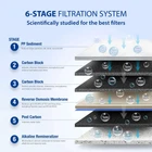 The ROES-PH75 is a 6-stage 75 GPD reverse osmosis water filtration system that adds calcium minerals to enhance the water taste for people who prefer mineral water. This system features a premium mineral cartridge that adds only high-purity calcium carbonate to effectively raise pH in the water for those who desire alkaline water. Other re-mineralization reverse osmosis systems will claim to add various beneficial minerals back into the water; however, their mineral formulations are often from unknown and uncertified sources that can lead to potential health concern. With the ROES-PH75 RO system, users will enjoy unlimited great tasting healthy water right at home for drinking and cooking. Save money, time, and from buying costly, bottled water and live healthier with ultra-safe pure mineral water that is worry free. Designed, engineered and assembled in the USA, this 6-stage water filtration system is ROES-PH75 system has been tested and certified to the highest standard in the industry- WQA gold seal, to guarantee the highest impurity removal rates, giving you the purest water possible. Based off APEC 20 years of experience in reverse osmosis systems design and production, this system will provide users with high-quality safe drinking water for many years to come. 1st Stage: High-capacity polypropylene sediment filter removes sediment, particles, and rust. Protects and extends the life of the membrane and system. 2nd & 3rd Stage: Premium extruded carbon block gets rid of unpleasant chlorine, tastes, odors, cloudiness and colors. Also removes VOCs and other common harmful impurities from the water. 4th Stage: High Rejection TFC reverse osmosis membrane removes up to 99% of total dissolved solids (TDS - total dissolved solids) and impurities such as arsenic, lead, fluoride, chromium, radium and much more. 5th Stage: Advanced coconut shell refining carbon filter (TCR) removes any possible residual taste from the tank. 6th Stage: PH+ alkaline re-mineralizing calcium filter adds calcium carbonate to increase water alkalinity. Supreme quality – Designed, engineered and assembled in USA to guarantee water safety & your health. This 75 GPD 6-stage system ROES-PH75 is guaranteed to remove up to 99% of impurities such as Chlorine, Taste, Odor, VOCs, as well as harmful Fluoride, Arsenic, Lead, Heavy Metals and 1000+ impurities. Max Total Dissolved Solids - 2000 ppm. Feed Water Pressure 40-85 psi Premium made filter cartridge uses premium-grade calcium from trusted source for safe, proven water ph enhancement. Enjoy ultra-pure drinking water with added calcium minerals for improved alkalinity and great taste. WQA certified system. Premium long lasting filters used to treat tap/well water. Provides unlimited clean drinking water. America's no.1 rated water filter brand with 20 years of success guaranteeing trouble free, noise-free system for long lasting, dependable, pure drinking water.