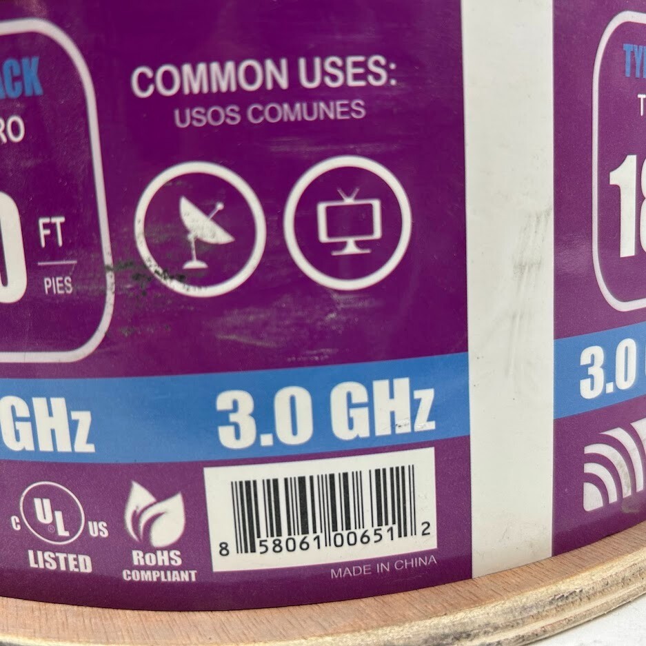 This premium quad shield coaxial cable is designed for high-definition video, digital audio, and broadband signal transmission , ensuring optimal performance with minimal interference . It is ideal for CATV, MATV, high-resolution analog and digital video, and satellite applications . Key Features and Benefits Quad Shielded Design – Reduces signal interference , providing a clearer picture and superior audio quality . Smooth, Flexible Construction – Easy to pull and strip , simplifying installation. Nitrogen-Injected Skin-Foam Dielectric – Enhances high-frequency signal integrity while maintaining low return loss and excellent crush resistance . Easy Footage Marking – Ascending and descending numbering allows for precise cutting and quick installation . Room and Zone Legend Marking – Helps organize multi-room installations efficiently . RoHS Compliant – Free from restricted metals and hazardous compounds , ensuring environmental safety . Meets NEC Standards – Ensures compliance with national electrical codes for safe installation. UL and/or ETL Listed – Certified for reliability and performance in residential and commercial applications. Ideal For: Cable TV (CATV) & Master Antenna TV (MATV) High-Definition Serial Digital Video (HD-SDI) High-Resolution Analog Video Satellite Signal Transmission Digital Audio & Data Processing Reliable, High-Quality Connectivity This quad shield coaxial cable is engineered for superior durability, flexibility, and signal clarity , making it an excellent choice for professional and home installations . We take great care to inspect all items and ensure they are accurately described. Should you have any issues with your purchase, please let us know immediately. We are committed to resolving any concerns promptly and to your satisfaction. Our small business truly appreciates your patronage.