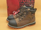 This is a pair of Wolverine Floorhard LX safety shoes for men in size 11.5 extra wide. They are brown lace-up boots with a cap toe, designed for winter, fall, and spring seasons. Made of leather, they have a safety feature and are waterproof, suitable for work environments requiring protection and durability. Brand New with Box. 6 in Soft Toe Waterproof sugar brown working boots