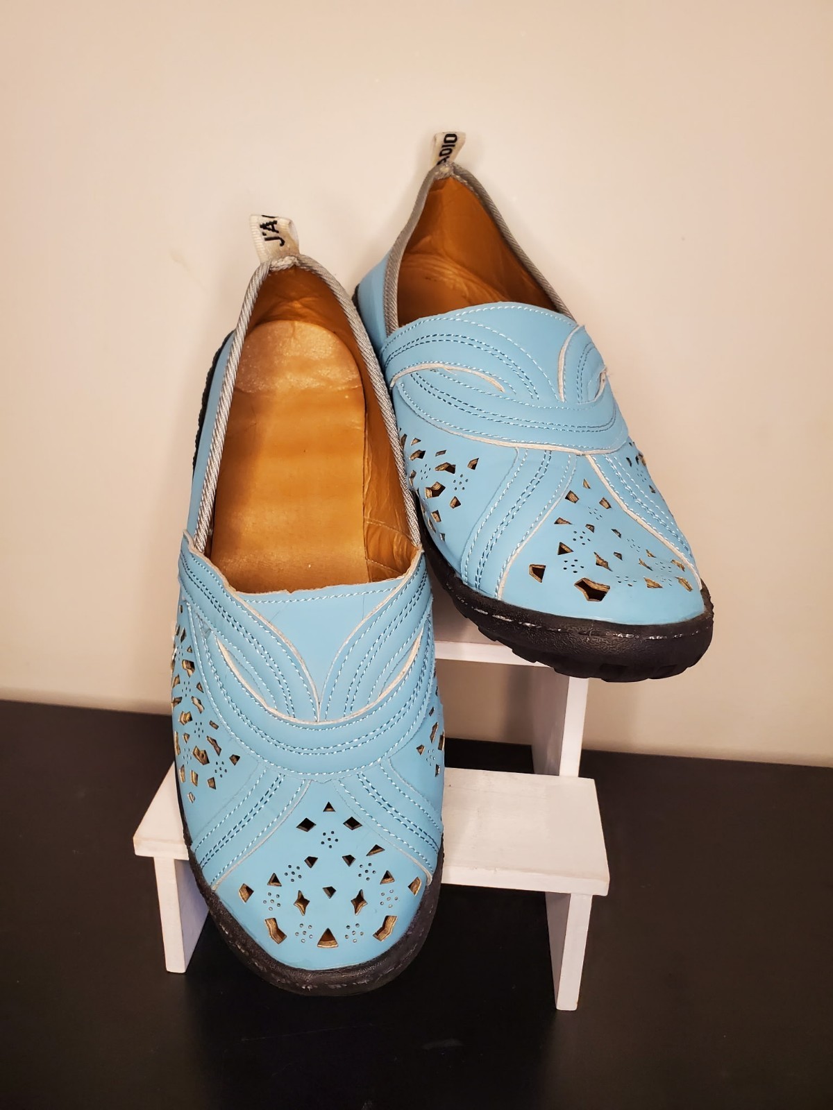 Add a pop of color to your shoe collection with these beautiful turquoise Christian Dior J'Adior slip-on shoes. The shoes are a US size 9 and an EU size 40, and are slip-on's. Add these beautiful and stylish shoes to your collection today!