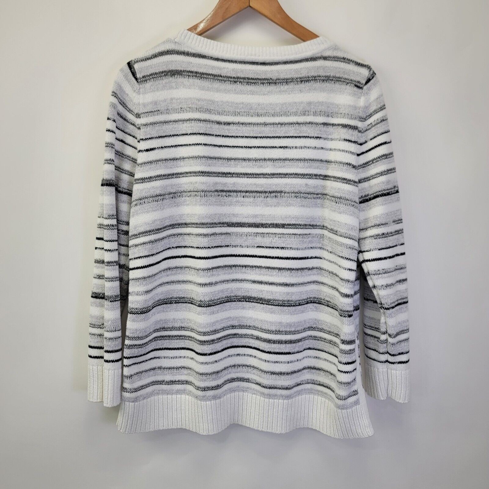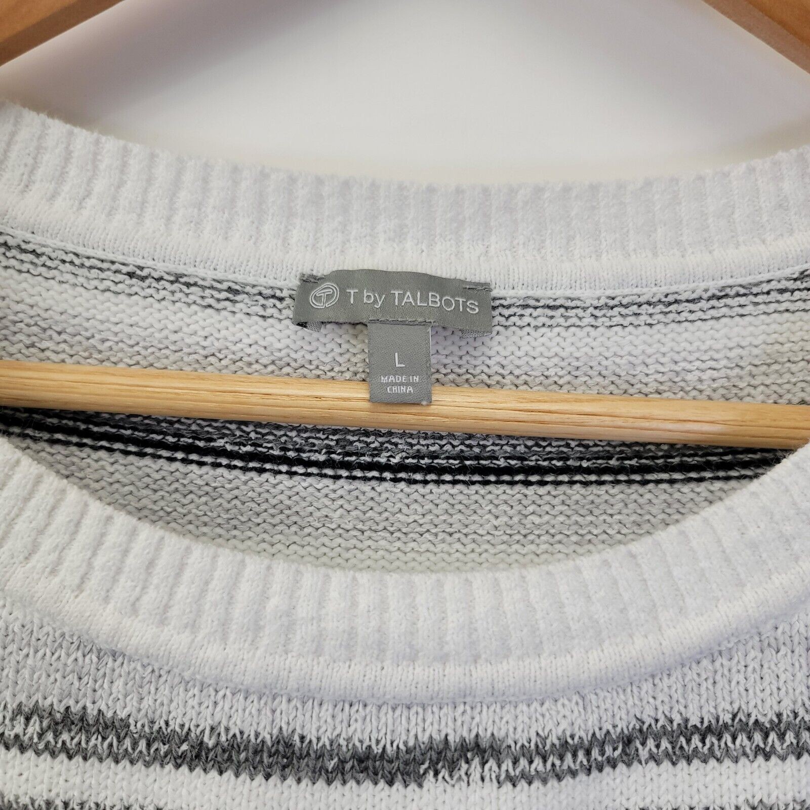 T by Talbots Mixed Yarn Striped Sweater Size Large White Black Gray Casual Condition: Gentle wash wear, good pre-owned condition. No rips, stains, or holes. Care instructions: Machine washable. Approximate measurements provided in photos. Fit tip: Compare the measurements of this item with those of a well-fitting garment that you currently own. Additional measurements available upon request. Next business day shipping! Thank you for supporting small business!