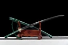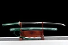 Product Parameter: Package:1 sword with saya+1 random bag Profesionals can use it to cut bamboo, paper, branches, or water bottles, etc. It's a functional sword. Material: Clay tempered T10 high carbon steel Overall: 103cm / 40.6" Blade: 70cm / 27.5'' Handle: 26 cm / 10.24'' Widdth: 3.2 cm / 1.26'' Thickness: 0.7cm / 0.28'' Blood groove): double bohi HRC(Hardnesss): 60 Nakago: Full tang ,2 meguki fix the handle vertically, very firm Fitting: Alloy Saya: Lacquered wood sheath Blade Type: Unokubitsukuri 鹈首造 Craft: Fully hand forged, water quenching treatment,hand-polishing,etc. The steel we use is not the normal steel with the truck or cars or other life electrics, the steel use for the blade contents much more carbon and the purity can not be comparable. * All the fittings can be replacement. * The sword stand is not include . Tsuba & Fuchi & Kashira & Habaki Saya Additional Service About us Delivery details Tsuba & Fuchi & Kashira & Habaki Alloy Tsuba Iron Tsuba ( extra $10) Brass Set ( extral $50 ) Alloy Fuchi & Kashira Habaki TSUKA-ITO & SAGEO Tsuka-ito is the wrapping of the tsuka and sageo (下緒 or 下げ緒) is a hanging cord that is passed through the hole in the kurigata (栗形) of a Japanese sword's saya. SAMEGAWA Samegawa(鮫皮)is the ray or shark skin wrapping of the tsuka (handle/hilt). Saya Please contact us before placing an order to see if there is any stock available, as well as any additional charges. OX Horn Saya Additional Service It's free for engraving English words, Chinese Characters and Japanese Kanji , etc. You need pay extral $20-30 for engraving patterns. Hamon We can add or remove the machine-made wavy hamon for free. Bo-hi ( Blood Groove) Usually thought be used for bloodletting only. It is also used to lighten the weight of the sword. We can add or remove Bo-hi for free Sharpness Most of our blades are sharp. We can also make the blade unsharpened for free if you require. Colored Blade If you want to change to a different color blade, please contact us before purchase. Matching Swords Set If you buy one katana, we can make a matching Wakizashi or Tanto for you. The price varies from different swords. Please contact us if you need make custom matching set. About us We have our own sword-casting factory. The factory is located in Longquan, a small town with a long history of sword-casting in China. Most of the famous Swords in China are made there. Rich raw materials, skilled technology, traditional sword casting technology from generation to generation. Manual production really takes a lot of time. We will prepare most products in advance ,and arrange delivery within about a week. However, sometimes the delivery time is delayed due to weather or raw materials,etc. we hope to get your understanding. Feel free to contact us to inquire about the status of your order. Each handmade sword is unique. Our swords are great for gifts or for your own collection. Our swordsmithing master makes every sword attentively, hope you can feel our sincerity. We will also give you the best customer service, any questions please feel free to contact us. Delivery details a) Import duties, taxes and charges are not included in the item price or shipping charges . These charges are the buyer’s responsibility. b) If you do not receive the package, or the package is damaged during transportation. We'll take care of it. Please feel free to buy. c) If it is mentioned in the product description that the package includes the sword bag or sword holder , the style will be random. The sword holder or sword bag on the ebay picture is the props we use for shooting. If you really like a style, please contact us before buying. d) If you have any problem after recieve the package (wrong size, wrong style, etc.). We always provide you with the best after-sales service. Please give us a chance to help you before you give us a bad feedback . Thank you very much!