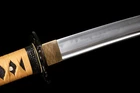 eBay Document We Can Customize Your Unique Sword CUSTOMIZE SWORD SEND FROM CHINA Blade Struture/ Length / Sori / Hamon Type / Kissaki Type / Engraving / Fittings A BOUT T HE S WORD: Fully functional and battle ready.The accessories of the sword are all authentic.It is designed by our experienced swordsmith with carefully crafting to creat a high-performance blade for real use.The sword is really cost-effective and will be your best choice to show to your friends or keep it as a collection or send it as the gift.Also,it is very suitable for training and cutting pratice. Description: Condition: Brand-New Blade Material: T10 Steel Clay Tempered Real Hamon Overall Length: 40.5 Inch /104Cm Nagasa Length: 27.8inch/70.5cm Handle Length: 10.6 Inch / 27 Cm Blade Shape: Shinogi Zukuri Blade Edge: Hand Polished Be Razor Sharp Handle Material: Ray Skin + Hard Wooden Blade Width (Near Kissaki): 0.91inch / 2.3cm Width (Near Habaki): 1.26 Inch / 3.2Cm tsuba Material: High Quality Japanese Iron Saya Material: High Quality Wood Saya Tsuka Ito: Chu -kissakireal ray skin covering and real navy silk wrap Bohi:Yes Mekugi:Nr. in bamboo Structure:Maru PACKAGE: 1 x Sword 1 x Black Sword Bag We Have 3 Types of Sword Stand, If You Need Them, You Can Click On The Image To Open The Link And Purchase. Send Form USA. S WORD P ICTURES Tsuba is made of Iron material with elegant patterns. Other accessories are also made of Brass material, so there is no need to worry about fading and discoloration.The sheath is made of wood and Repeatedly polished and lacquered, with beautiful and delicate patterns.The handle(Tsuka) is made of wood, covered with real ray skin inside, wrapped with cotton rope. Sageo is a thick cotton rope, which feels better and looks more beautiful. Real katana sword: This katana is a handmade T10 Steel sword for 100%. after more than 10 traditional processes, including annealing, tempering, quenching, and other heat treatment processes, is super sharp and durable. The sheath is made from high-quality wood and oil paint.The blades are hand polished , the blades are very sharp and can be used for real cutting swords. What you need to do is cleaning it with cloth or tissue.in Daily use, you also should pay attention to maintenance the product.Try not to touch the water. Once it touches the water, you must clean up the water. Avoid remaining moisture on the blade.Be careful do not place in a place where it is wet and in direct sunlight. And its handle is fixed by two "bamboo nails", which greatly enhances the stability of the sword.The rope of the handle is made of pure cotton and wrapped manually. It is very tight, sweat-absorbing and skid-resistant, so as not to slip out of your hand. The blade is forged and polished repeatedly using traditional and unique technology. The surface is very smooth. KATOKU - Sword Forge Copyright