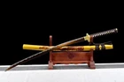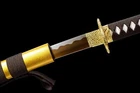 Product Parameter: Name: 金龙打刀 Material: T10 high carbon steel Overall: 103cm/40.6" Handle: 26 cm/10.24'' Blade: 70cm/27.5'' Width: 3.2 cm/1.26'' Thickness: 0.7cm/0.28'' Blood groove: No bohi Fittings: Alloy Saya: Hardwood with gold dragon pattern Construction: Maru Hardness(HRC): 56 Tang(nakago): Full tang (2 bamboo mekugi vertically fixed handle,very firm) Craft: Hand forged and polished with 10 procedures.quenching,electroplating color,etc. * It's a functinonal sword. After testing, you can use it to cut bamboo, paper and water bottles,etc. * Each handmade blade may have a slightly different color. The blade is a different color in different light. Each one is unique. * Packge: 1sword with saya+1bag Tsuba & Fuchi & Kashira & Habaki Saya Additional Service About us Delivery details Tsuba & Fuchi & Kashira & Habaki Alloy Tsuba Iron Tsuba ( extra $10) Brass Set ( extral $50 ) Alloy Fuchi & Kashira Habaki TSUKA-ITO & SAGEO Tsuka-ito is the wrapping of the tsuka and sageo (下緒 or 下げ緒) is a hanging cord that is passed through the hole in the kurigata (栗形) of a Japanese sword's saya. SAMEGAWA Samegawa(鮫皮)is the ray or shark skin wrapping of the tsuka (handle/hilt). Saya Please contact us before placing an order to see if there is any stock available, as well as any additional charges. OX Horn Saya Additional Service It's free for engraving English words, Chinese Characters and Japanese Kanji , etc. You need pay extral $20-30 for engraving patterns. Hamon We can add or remove the machine-made wavy hamon for free. Bo-hi ( Blood Groove) Usually thought be used for bloodletting only. It is also used to lighten the weight of the sword. We can add or remove Bo-hi for free Sharpness Most of our blades are sharp. We can also make the blade unsharpened for free if you require. Colored Blade If you want to change to a different color blade, please contact us before purchase. Matching Swords Set If you buy one katana, we can make a matching Wakizashi or Tanto for you. The price varies from different swords. Please contact us if you need make custom matching set. About us We have our own sword-casting factory. The factory is located in Longquan, a small town with a long history of sword-casting in China. Most of the famous Swords in China are made there. Rich raw materials, skilled technology, traditional sword casting technology from generation to generation. Manual production really takes a lot of time. We will prepare most products in advance ,and arrange delivery within about a week. However, sometimes the delivery time is delayed due to weather or raw materials,etc. we hope to get your understanding. Feel free to contact us to inquire about the status of your order. Each handmade sword is unique. Our swords are great for gifts or for your own collection. Our swordsmithing master makes every sword attentively, hope you can feel our sincerity. We will also give you the best customer service, any questions please feel free to contact us. Delivery details a) Import duties, taxes and charges are not included in the item price or shipping charges . These charges are the buyer’s responsibility. b) If you do not receive the package, or the package is damaged during transportation. We'll take care of it. Please feel free to buy. c) If it is mentioned in the product description that the package includes the sword bag or sword holder , the style will be random. The sword holder or sword bag on the ebay picture is the props we use for shooting. If you really like a style, please contact us before buying. d) If you have any problem after recieve the package (wrong size, wrong style, etc.). We always provide you with the best after-sales service. Please give us a chance to help you before you give us a bad feedback . Thank you very much!