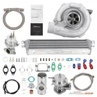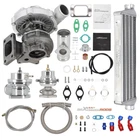 Application Universal Turbo Kit Perfect for 1.5L-3.0L engine, 4/6 cylinder This Kit Will be able to add 350+HP at 7.5-14.5 PSI. (You will need Turbo Manifold, Modification and other accessories to complete the Turbo Kit Project) *Notice: Please confirm that your vehicle displacement is 1.5L-3L before purchasing. Otherwise, if you buy the wrong one, you will not be able to use it normally. Specification Turbine Side: Exhaust Inlet Flange: T3 T4 4 bolt Flange Patterns Exhaust Outlet pipe Flange: 5 bolt Flange Turbine Trim: 74.2 Turbine Inducer Diameter: 64.8 mm Turbine Exducer Diameter: 55.8mm Turbine A/R: 0.63 Compressor Side: Compressor Trim: 48.1 Compressor Inducer Diameter: 52.7mm Compressor Exducer Diameter: 76 mm Compressor A/R: 0.5 Compressor Inlet Diameter: 72mm(2.8") Compressor Outlet Diameter: 53mm(2") Bearing Type: Wet Float Bearing Cooling Type: Oil Cooling Thrust Bearing: 270 degree Horsepower: Up to 400HP Oil Inlet: 1/8 NPT Turbo Type: Individual Condition: 100% Brand New Accessories: You will get exactly as shown as picture above Other specification in the kit : *1 x Intercooler: Size 27'' x 7'' x 2.5'' inch. Inlet size is 2.5 inch. Support up to 350 hp for this small intercooler size - tube and fin style . Intercooler core size: 21*7*2.5 *1 x Type-S Blow Off Valve: 2.5" Inch Type S/Rs Flange Pipe. 25PSi Boost! (the color will be shipped randomly) *1 x BOV pipe: can install anywhere suitable *1 x 35/38MM Wastegate: 35/38mm External Waste Gate Kit (the color will be shipped randomly) *1 x Turbo Oil Return / Feeding Line Kit: Turbo Oil Feed + Return Drain Line Kit Combo. Package Size: 94x 46 x 45 cm Package Weight: 24600g Features 1. Turbocharger: *Turbine housing: Ductile iron QT450-10 - temperature resistant up to 700℃ *Steel turbine wheel: K418 alloy - high oxidation stability and resistance up to 900℃ *Compressor housing: ZL104 aluminum with lightweight *Compressor wheel/blades: Cast aluminium blades – superior air tightness & corrosion resistance *Product Features Cost-effective turbo increase 20-40% power for your car Rich experience in turbo production and own factory High-Speed oil seal ring and Precision clearance Built for durability and strength * Technology Advantage: 100% balancing Test by TURBOTECHNICS VSR3 G3-min-Flow VNT Turbo testing Advanced Actuator Tester/Programmer 2. Intercooler * core size:21*7*2.5 cools down the turbocharged air efficiently * Lightweight aluminum racing intercooler, * Strong TIG welds will support high PSI levels 3. Turbo Oil returen /Feeding line kit * Stainless Steel Braided * Includes complete install kit * It helps circulate oil from the Turbocharger to the oil pan. * The kit provides a anodized look * gives a best cooling on your turbo and long lasting life. 4. Blow Off Valve Kit (the color will be shipped randomly) * CNC Billet Aluminum Type RS Style Blow off Valve * Easy Mount Piping Set Included For Bolt-On. * Including all necessary hardwares. * easily adjustable to prevent both permature boost leakage and compressor surge. * Fast response One For Low And High Boost Pressure. * Quality design will not leak under high boost conditions * Flanges can be installed at user discretion 5. 38MM Wastegate (the color will be shipped randomly) * Most reliable wastegates For competition vehicles. * accurate boost control * high quality appearance features Dual port design * comes with waste gate spring (fully adjustable, up to 15 psi), allow you to add the spring to get desired high psi. 6. BOV pipe/Adapter * can install anywhere suitable Package Include 1x Turbocharger 1x Oil Feed / Return Line 1x 35/38mm Wastegate (the color will be shipped randomly(Random Color) 1x Turbo Intercooler 1x Type-S Blow Off Valve(Random Color) 1x BOV Adapter/pipe (You will get exactly as shown in the picture) Note * Replace, repair or reconnect air cleaner element per manufacturer's manual to avoid compressor wheel damage. * Make sure the oil drain line is lower than the turbo itself. * Ensure exhaust outlet are well sealed by welding * The degree of modification of the universal turbo depends on your individual vehicle.Professional installation is highly recommended. * This Turbo is not vehicle specific. Please check the specifications and verify compatibility prior to placing your order. * Before installing the new turbocharger, the cause that led to the failure of the turbo must be analyzed and eliminated (e.g. insufficient oil supply, foreign bodies in the intake area, crankcase ventilation without function, etc.)! * Need modifications - Professionals ONLY (This is an aftermarket universal turbo kit for DIY purpose, and it's recommended to advanced players but not for beginners. ) MXR04FXJT