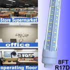 FAST DELIVERY - Ship from New Jersey or Los Angeles Warehouse via FedEx , 3-7 Days Delivered Your Door . SCIENTIFIC DESIGN - 8Ft LED Shop Lights Fixture is Made of 6500K Cold White SMD2835 LED Chip ,Plastic Clear Cover , Aluminum Bracket Housing ,and AC85-277V Constant Current Driver . It can work in -68F to 120F Temperature Conditions EASY INSTALLATION - The Integrated Tube Fixture Can be Install on Wall or Ceiling ,Easily Replace Traditional Fluorescent Tube Bulb . Plug and Play , Free Accessories (Power Cords, Connector , Extension Cords , Clip and Screw ) Come with Tube Lights Together WIDE APPLICATION - Linkable 8Ft Bulbs Widely Used in Garage Ceiling , Barbershop , Schools, Hospitals Basement , Factory Warehouses , Supermarkets Cooler Door , Offices, Shops,Hotels, etc T8 8Ft R17D HO Led Tube Light 8' Led Bulbs 144W 8Foot Led Shop Light 6500K 25Pcs 【Rotate Cap & Swivel End】 Easy Adjust rotated Lighting Direction within 180 degree after Installation 【No RF & FM Interference】LED Driver have passed Electromagnetic Magnetic Compatibility EMC tests,No cause EMI ,No longer subject to any RF & FM jamming. Never interfering with the signal of your garage roller shutter door,No make noise when you listen radio 【Easy to Install】Just simply bypass the ballast and connection AC85-277V AC power . Not compatible with single-ended powered sockets 【Wide Application】 - 8Ft 144W V Shaped R17D HO LED Bulb fitted to replace traditional F96T12 T8 T10 T12 fluorescent bulbs. Widely used in Garage,supermarkets, offices , convenience stores .