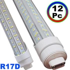 FAST DELIVERY - Ship from New Jersey or Los Angeles Warehouse via FedEx , 3-7 Days Delivered Your Door . SCIENTIFIC DESIGN - 8Ft LED Shop Lights Fixture is Made of 6500K Cold White SMD2835 LED Chip ,Plastic Clear Cover , Aluminum Bracket Housing ,and AC85-277V Constant Current Driver . It can work in -68F to 120F Temperature Conditions EASY INSTALLATION - The Integrated Tube Fixture Can be Install on Wall or Ceiling ,Easily Replace Traditional Fluorescent Tube Bulb . Plug and Play , Free Accessories (Power Cords, Connector , Extension Cords , Clip and Screw ) Come with Tube Lights Together WIDE APPLICATION - Linkable 8Ft Bulbs Widely Used in Garage Ceiling , Barbershop , Schools, Hospitals Basement , Factory Warehouses , Supermarkets Cooler Door , Offices, Shops,Hotels, etc T8 8Ft R17D HO Led Tube Light Bulbs 144W V Shaped 8' Led Shop Light 6500K 12Pcs 【Rotate Cap & Swivel End】 Easy Adjust rotated Lighting Direction within 180 degree after Installation 【No RF & FM Interference】LED Driver have passed Electromagnetic Magnetic Compatibility EMC tests,No cause EMI ,No longer subject to any RF & FM jamming. Never interfering with the signal of your garage roller shutter door,No make noise when you listen radio 【Easy to Install】Just simply bypass the ballast and connection AC85-277V AC power . Not compatible with single-ended powered sockets 【Wide Application】 - 8Ft 144W V Shaped R17D HO LED Bulb fitted to replace traditional F96T12 T8 T10 T12 fluorescent bulbs. Widely used in Garage,supermarkets, offices , convenience stores , 【High Output】8Ft 144W 18000LM R17D 6500K Cold White Color