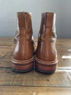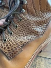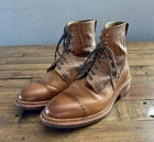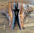 Absolutely gorgeous and in nearly new condition! Only signs of use are small amounts of scuff in leather around the sole on the backsides. These are very nice! See ALL photos!!! These are TAFT men's boots in size 8 with an almond toe shape and a lace-up closure. The boots feature a luxurious croc print design in cognac leather with stitch accents, a Dainite sole, and a mid-calf shaft style. Perfect for various occasions such as travel, weddings, parties, or business wear, these Chelsea-style boots offer a stylish and sophisticated look. The model is "The Irwin" and the brand is TAFT, known for its high-quality footwear.