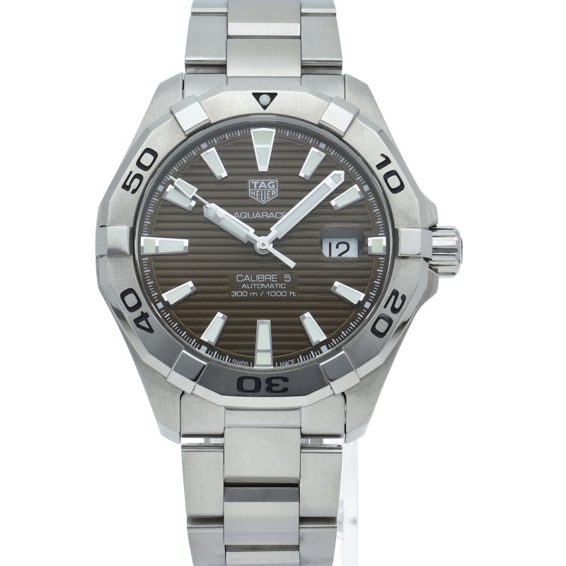 TAG Heuer Aquaracer Calibre 5 Men's Watch WAY2018 BA0927 Brown Dial Stainless Steel Box Papers