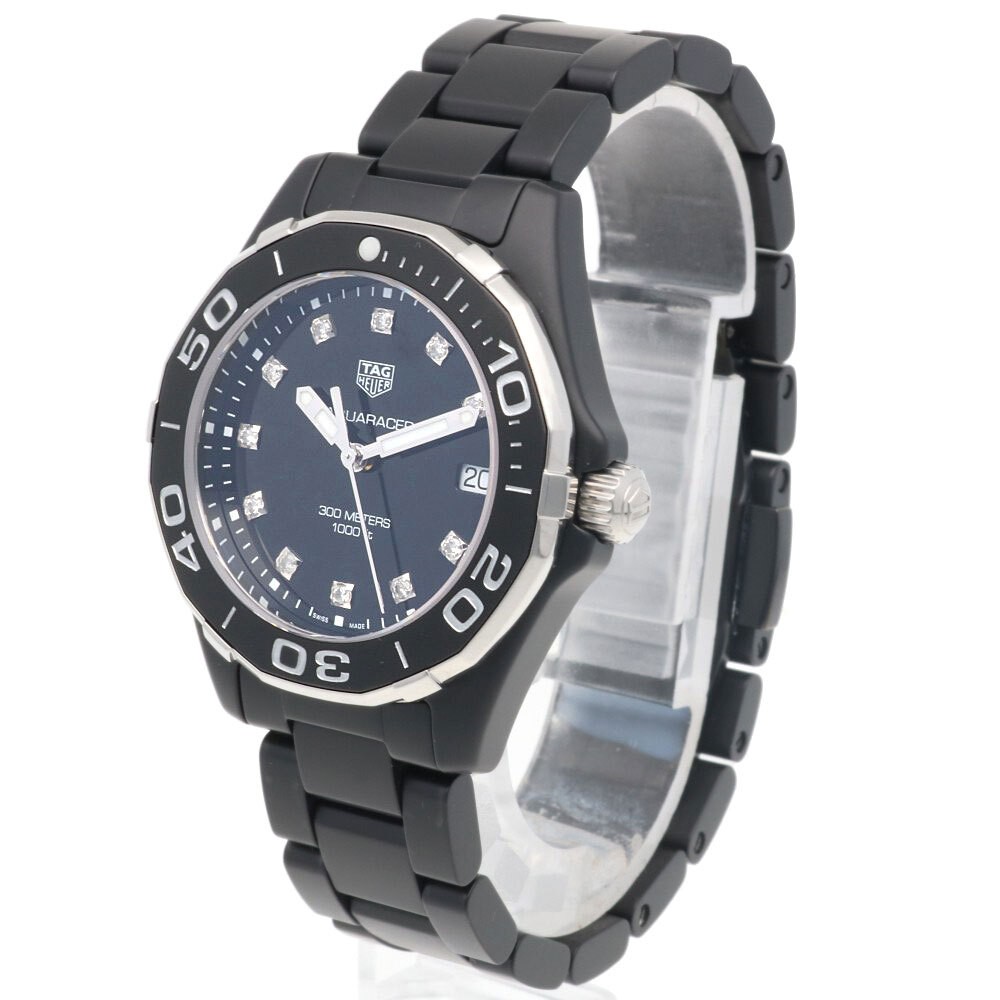 This TAG Heuer Aquaracer for women is a stunning timepiece with a sleek ceramic design and reliable quartz movement. The pre-owned condition adds character, and the seller provides helpful details about import duties. A perfect blend of luxury and practicality for any watch enthusiast!