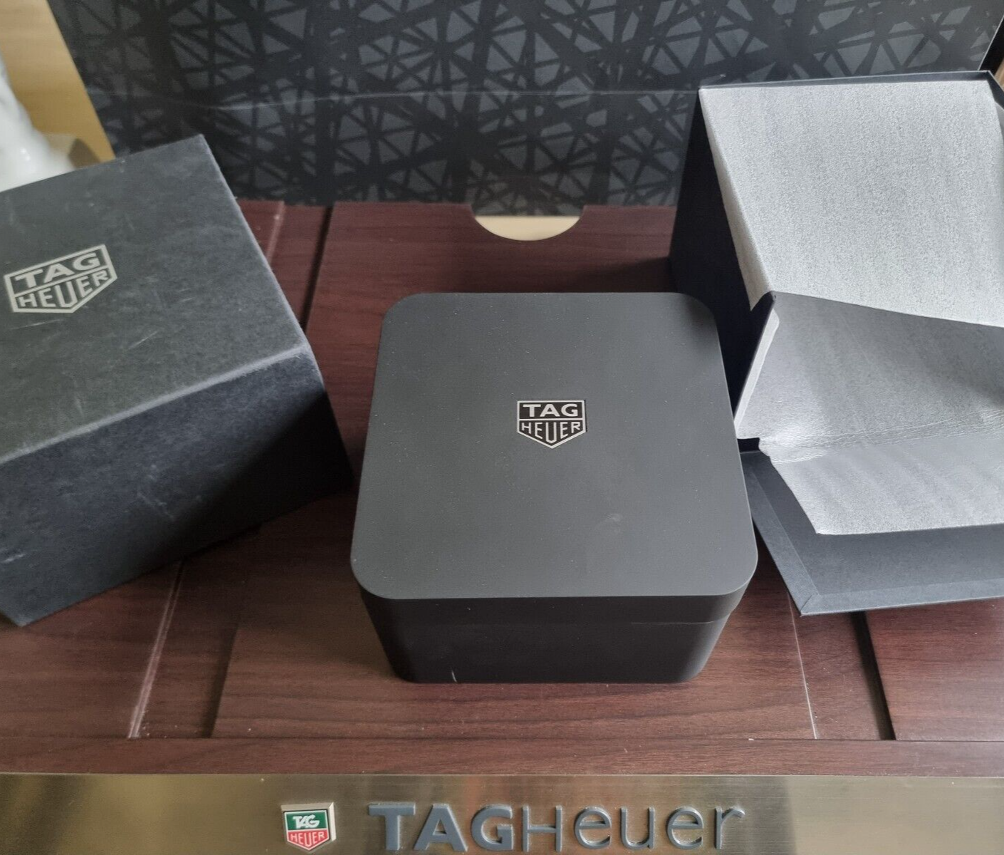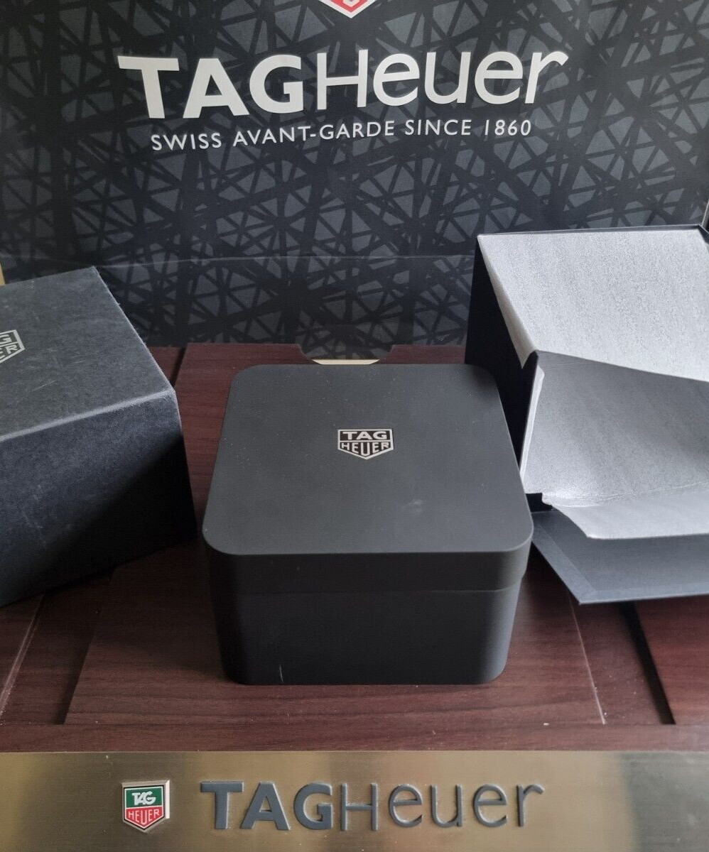 This TAG Heuer Connected watch box is a great find for collectors or owners needing a replacement case. The lid stays secure, but the back brackets are slightly loose—easy to fix if needed. Sold as-is, so check the photos carefully before bidding. Perfect for keeping your luxury watch safe!