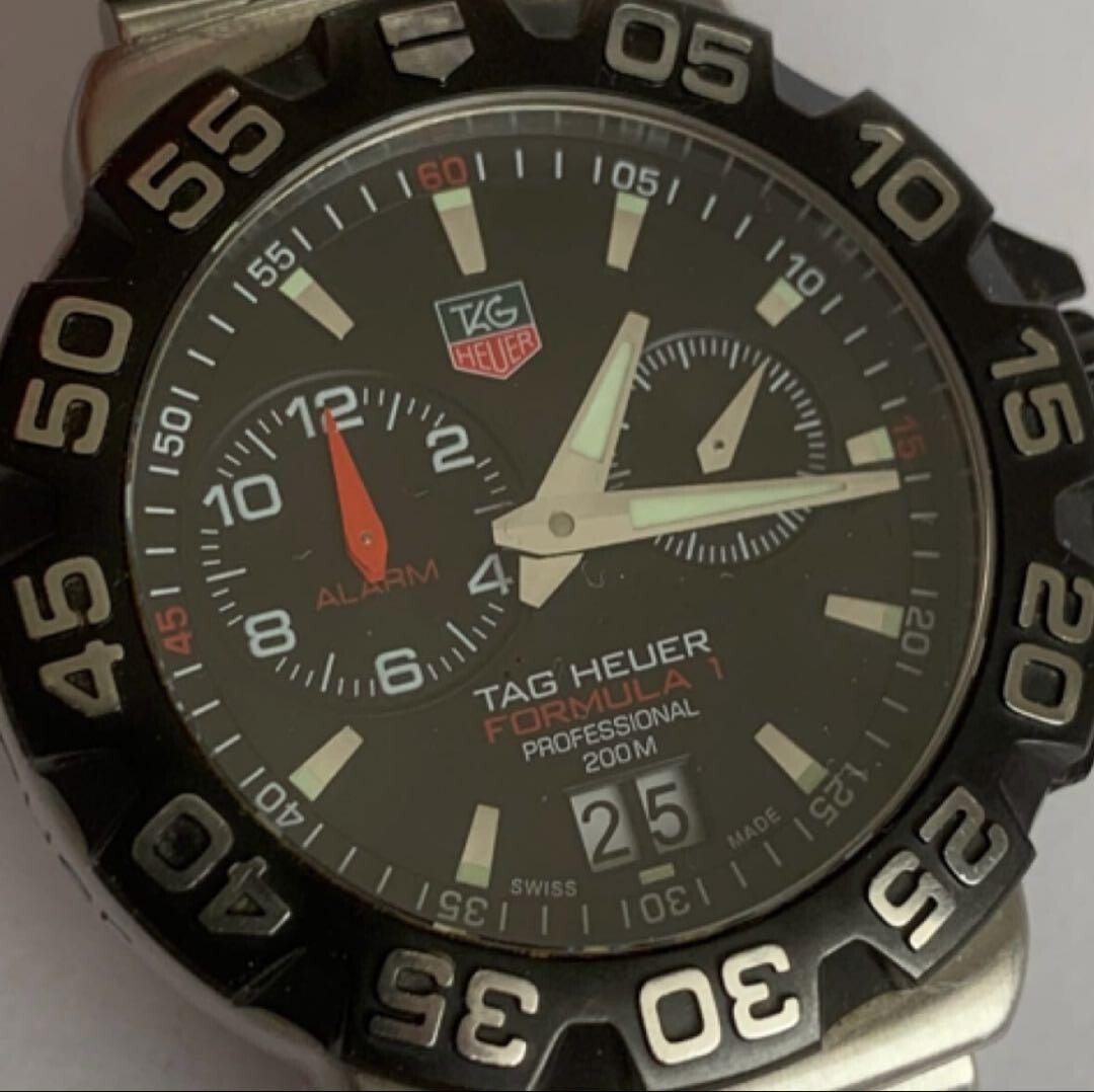 Customized: NA Department: Men With Papers: No Display: Analog gtin13: NA Case Size: 44 mm Watch Shape: Round Movement: Quartz Bezel Color: Black UPC: NA With Original Box/Packaging: No Water Resistance: 200 m (20 ATM) Case Color: Silver Type: Wristwatch Dial Color: Black Features: Chronograph Seller Notes: “Operation has been confirmed.Please check the condition by looking at the picture.” Style: Sport Model: TAG Heuer Formula 1 Case Material: Stainless Steel Reference Number: WAH111A Brand: TAG Heuer