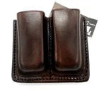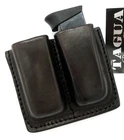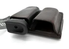 TAGUA DOUBLE MAGAZINE CARRIER Reliable Open Top Vertical Draw Design for Easy Access Two Ways to Wear: Dual Snaps Wrap Around Belts up to 2.5" Wide or Belt Slots Fit Belts up to 1.5" Wide Genuine Cowhide Leather Ambidextrous Fits GLOCK 42 and 43 Single Stack Magazines