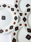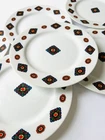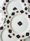 Enhance your dining experience with this set of six Taitù salad plates, designed by Emilio Bergamin and featuring the elegant Cravatta pattern. These porcelain plates are perfect for serving salads or other small dishes, and their multicolor design adds a touch of sophistication to any table setting. Crafted with high-quality materials, these plates are both durable and stylish. They are a must-have for any collector of decorative cookware, dinnerware, and serveware. Ideal for both formal and casual occasions, these Taitù salad plates are sure to impress your guests. 10/21